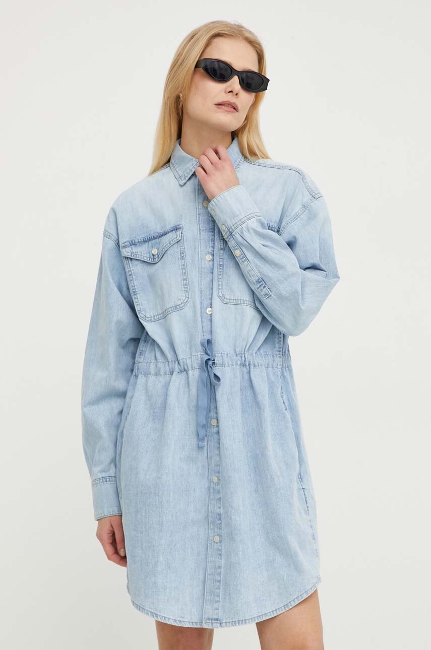 G-Star sukienka jeansowa kolor niebieski mini prosta