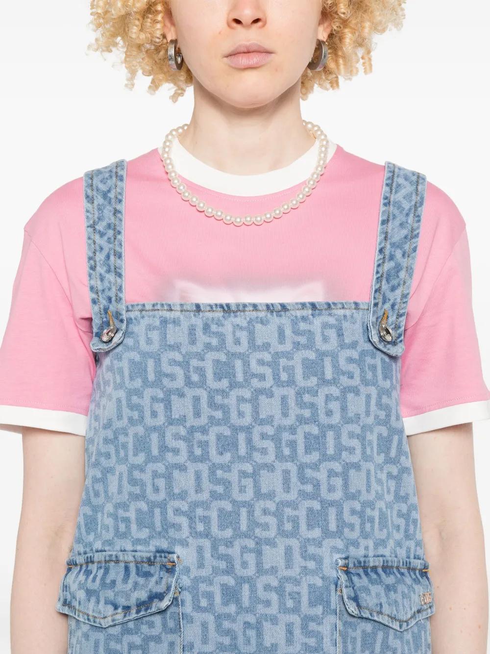 light blue button-fastening straps two side flap pockets square neck straight hem