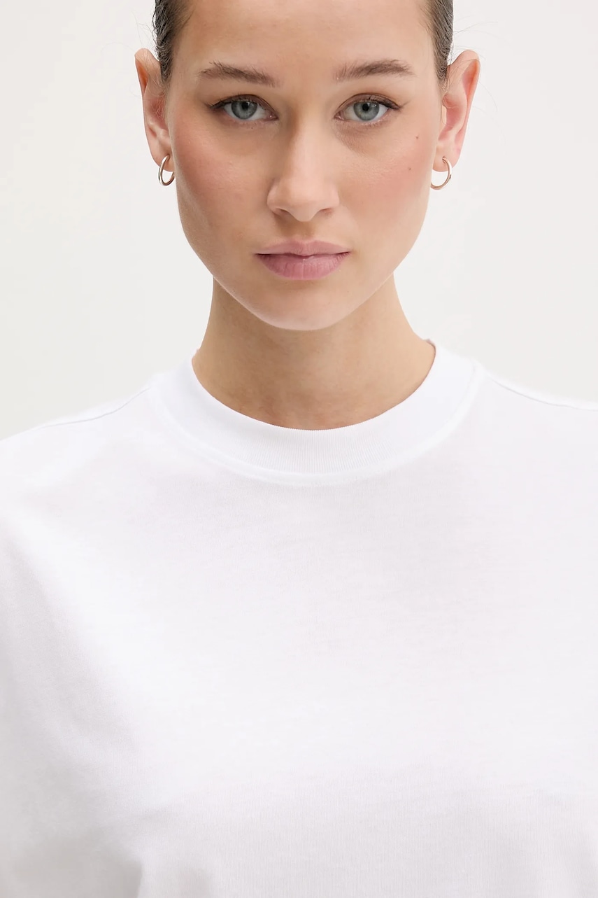 - Bawełna organiczna uprawiana jest bez użycia niebezpiecznych dla zdrowia substancji chemicznych, chemicznych środków szkodnikobójczych czy nawozów sztucznych. - Luźny krój zapewniający pełną swobodę ruchów. - Krótki rękaw. - Krój rękawa z obniżoną linią ramion nie ogranicza mobilności. - Klasyczny, okrągły dekolt. - Model bez podszewki. - Długość: 90 cm. - Szerokość pod pachami: 52 cm. - Wymiary podane dla rozmiaru: S.