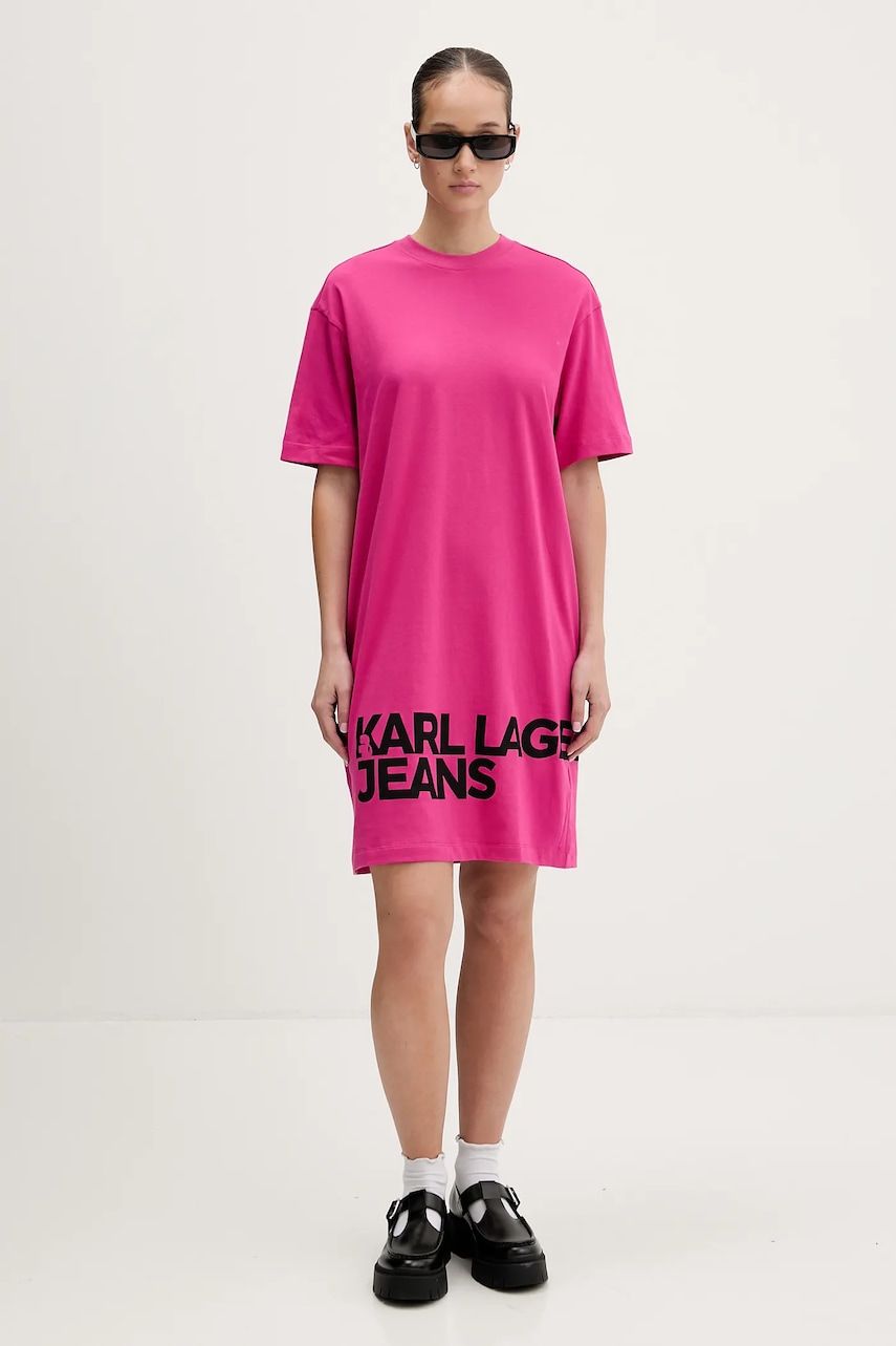 Karl Lagerfeld Jeans sukienka bawełniana kolor różowy mini prosta B1W13054