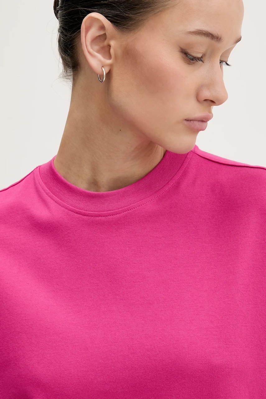 - Bawełna organiczna uprawiana jest bez użycia niebezpiecznych dla zdrowia substancji chemicznych, chemicznych środków szkodnikobójczych czy nawozów sztucznych. - Luźny krój zapewniający pełną swobodę ruchów. - Krótki rękaw. - Krój rękawa z obniżoną linią ramion nie ogranicza mobilności. - Klasyczny, okrągły dekolt. - Model bez podszewki. - Długość: 90 cm. - Szerokość pod pachami: 52 cm. - Wymiary podane dla rozmiaru: S.