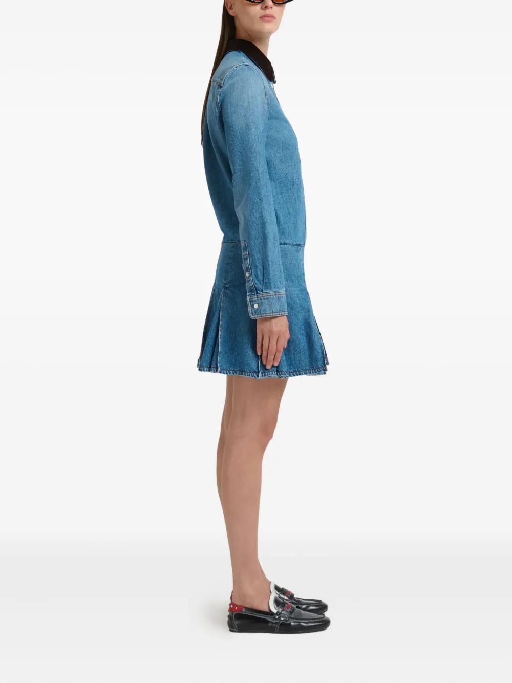 Marni x Slawn & Soldier embroidered pleated denim mini dress - Blue