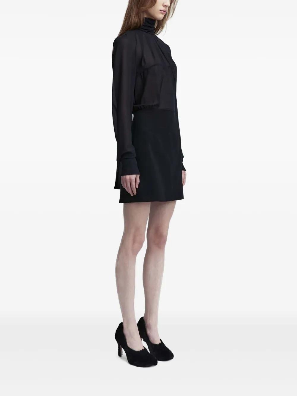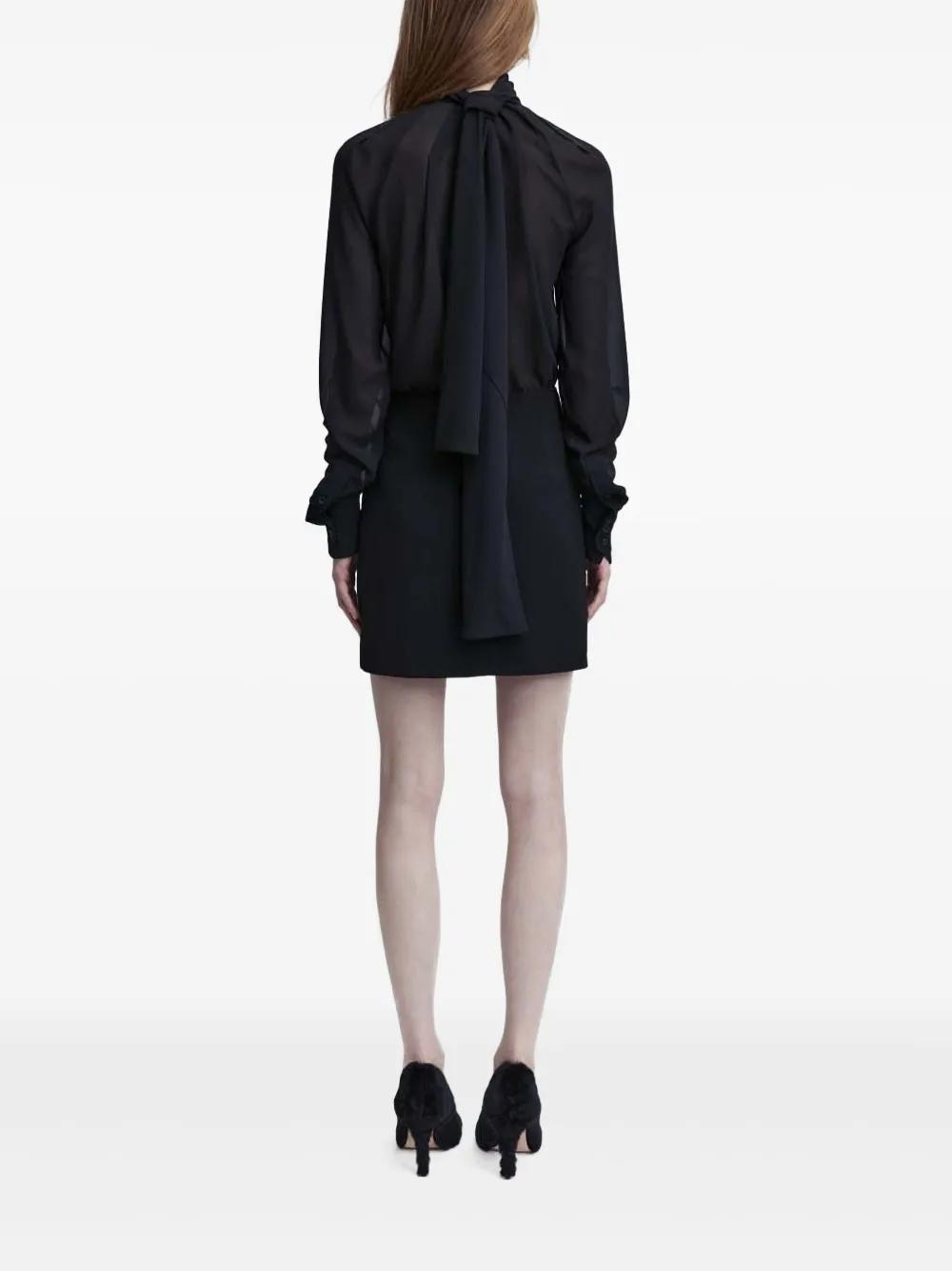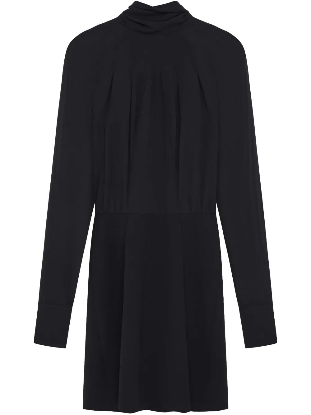 black halterneck tie fastening ruched bodice long sleeves buttoned-cuff sleeves long sleeves
