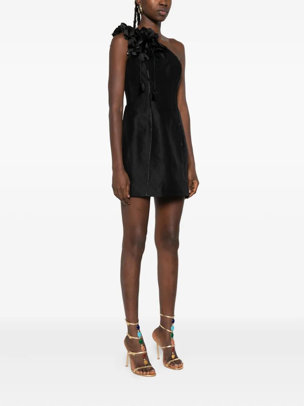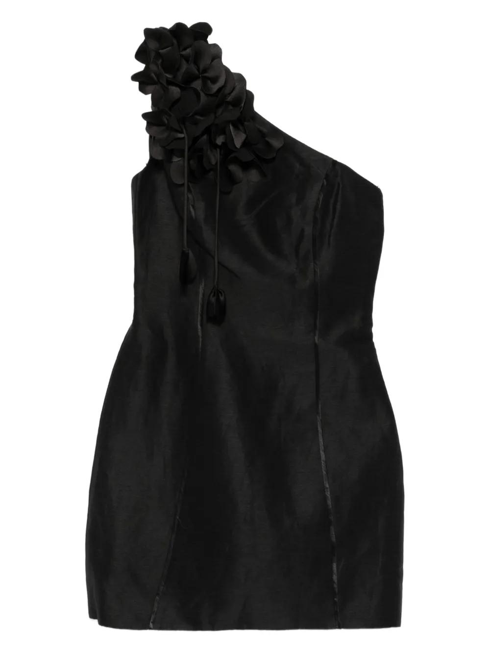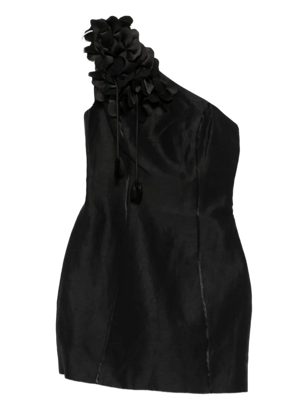 Aje Camille floral-appliqué one-shoulder mini dress - Black