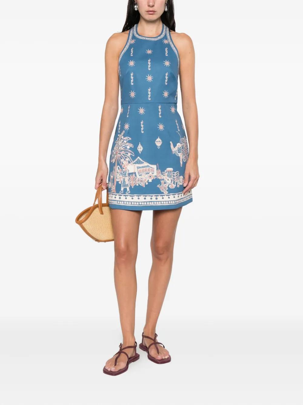 ALEMAIS Acacia tie-neck patterned mini dress - Blue