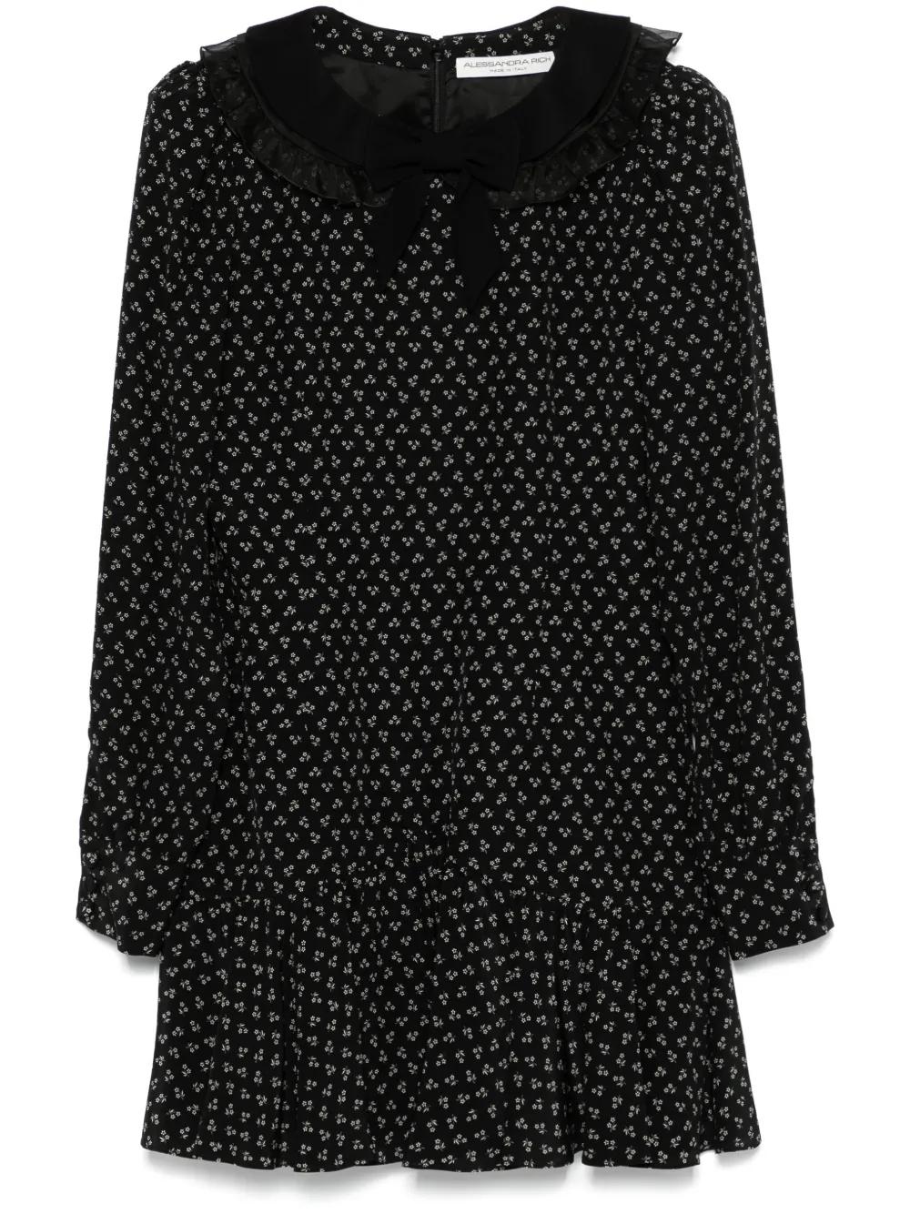 black concealed rear zip fastening large Peter Pan collar bow detailing shoulder pads