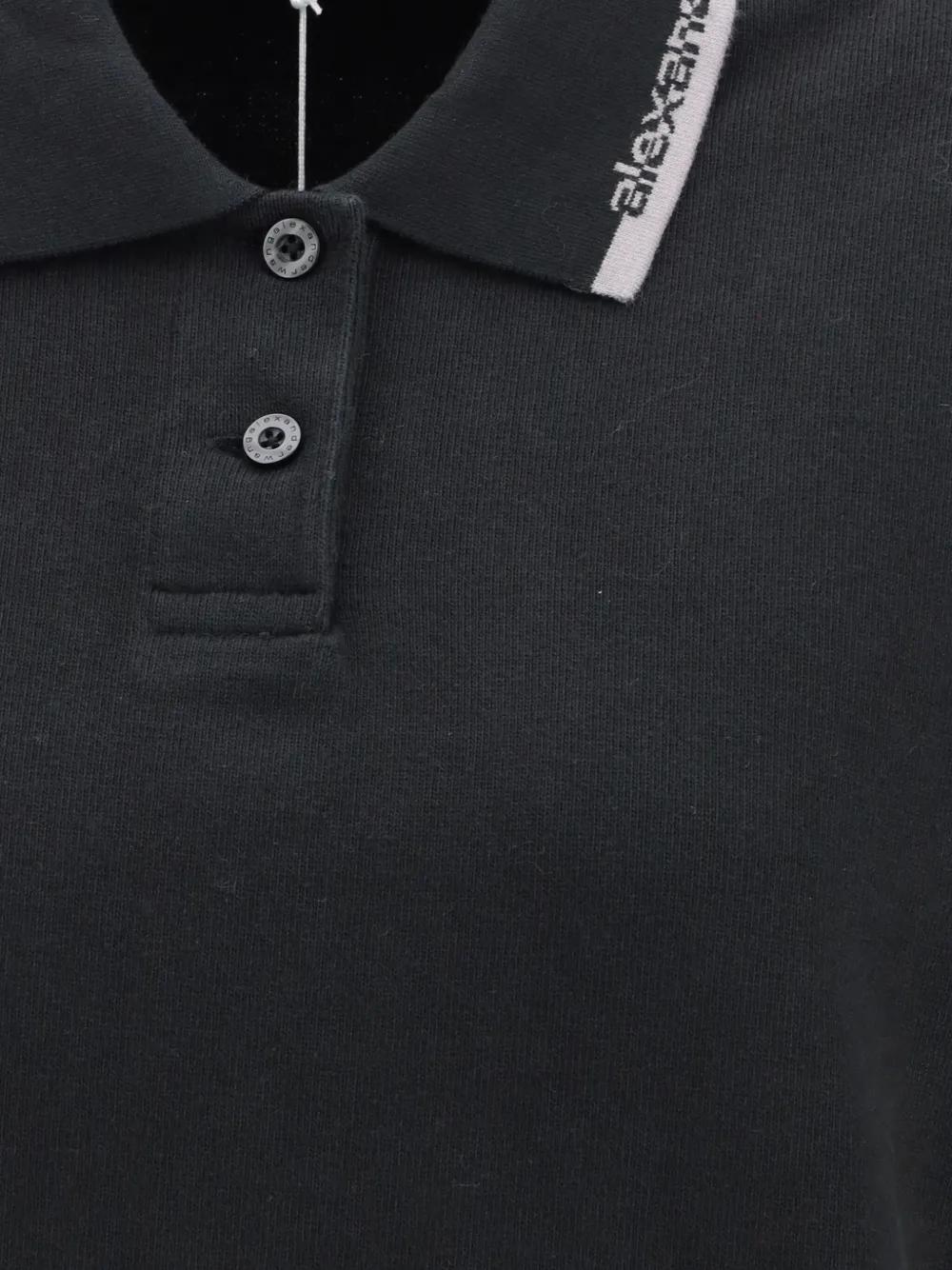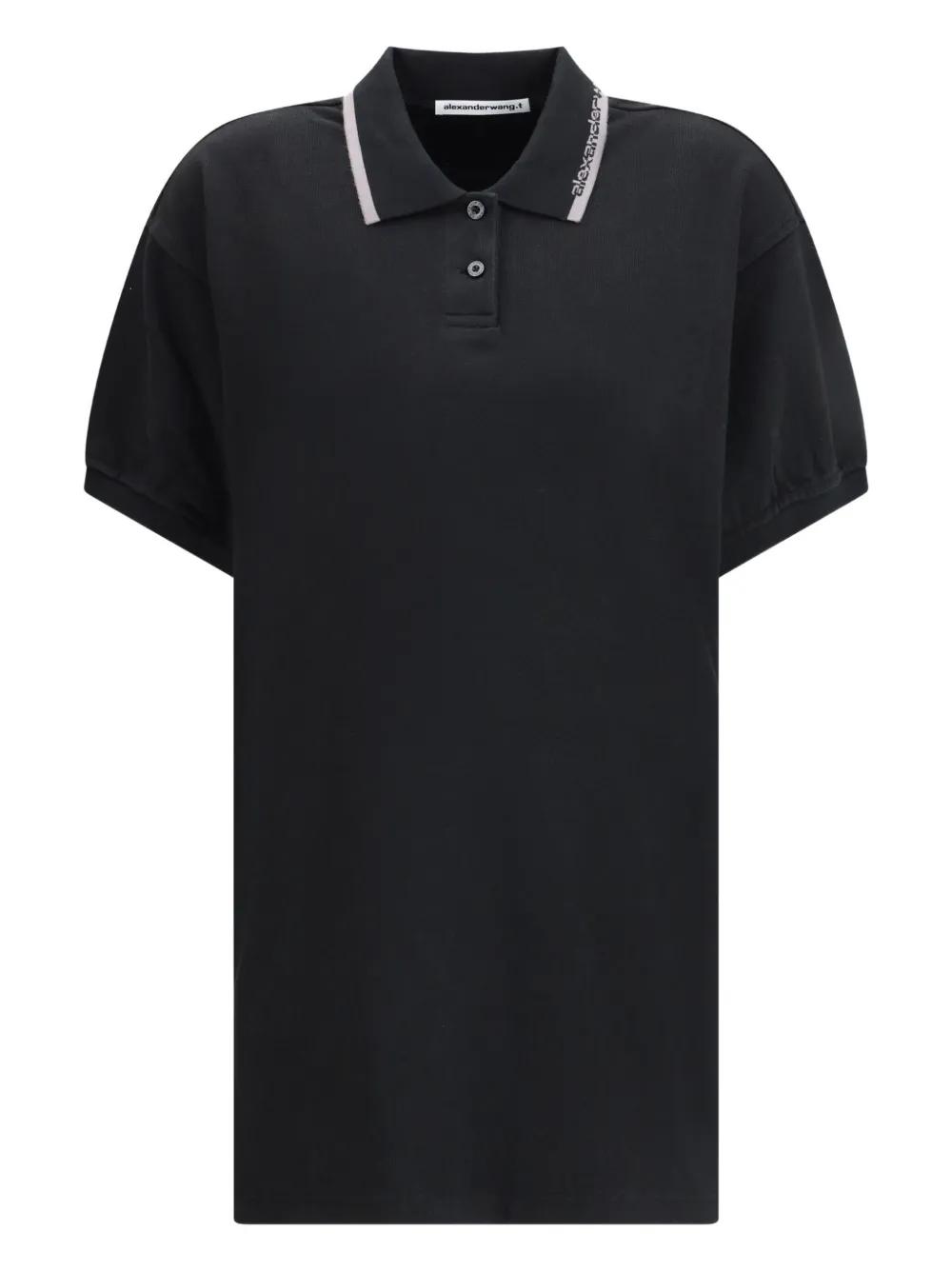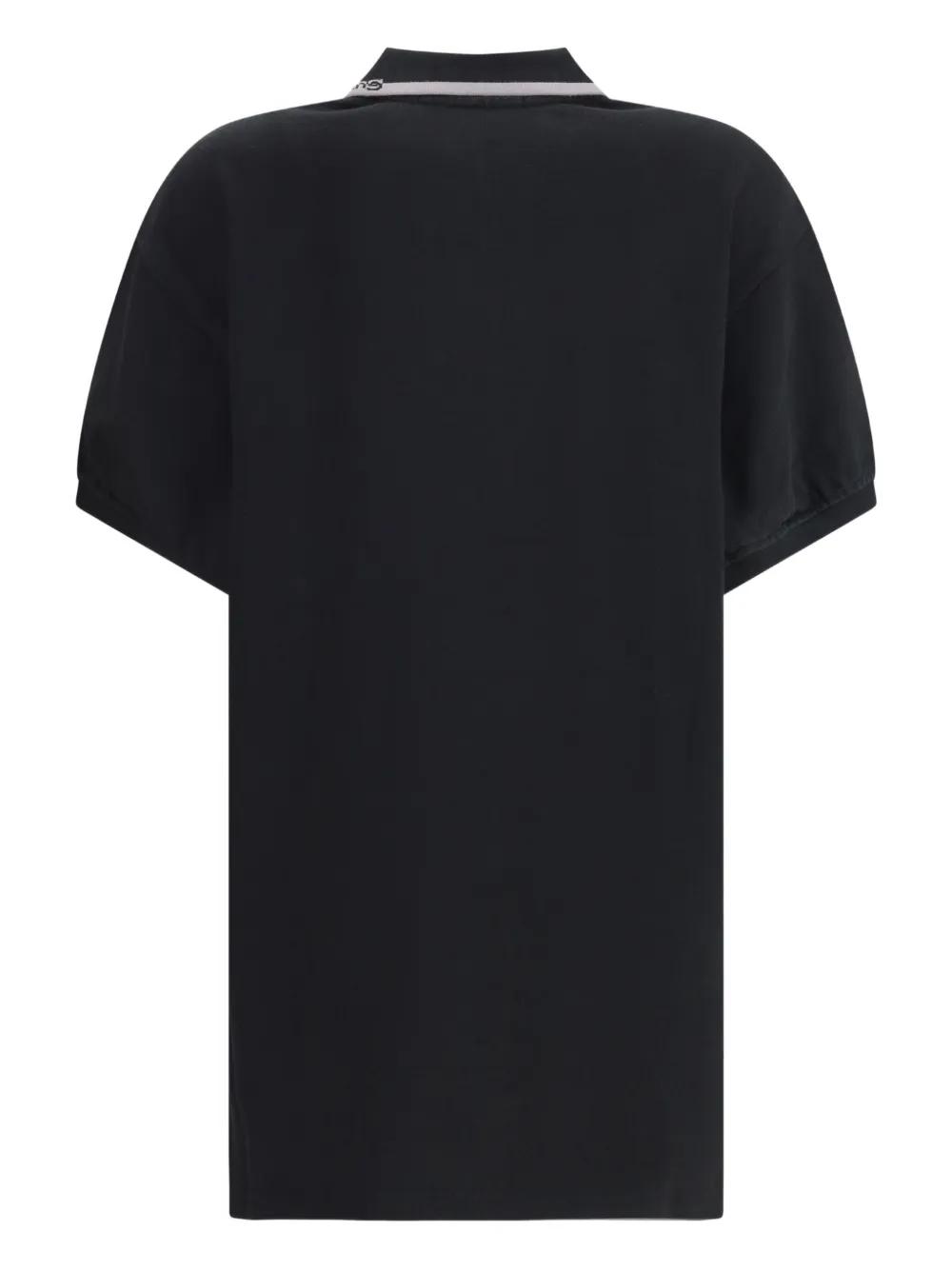black polo-collar button-fastening short-sleeves logo detail mini length