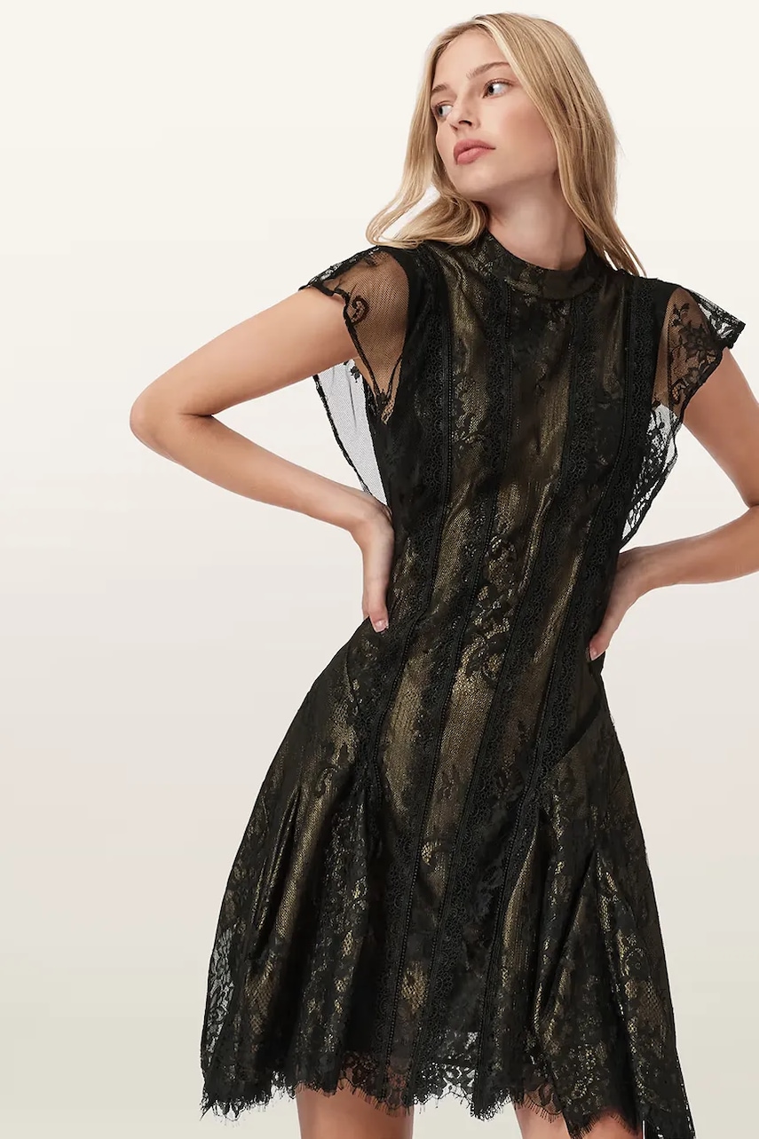 AllSaints sukienka FLEUR kolor czarny mini rozkloszowana W132DD