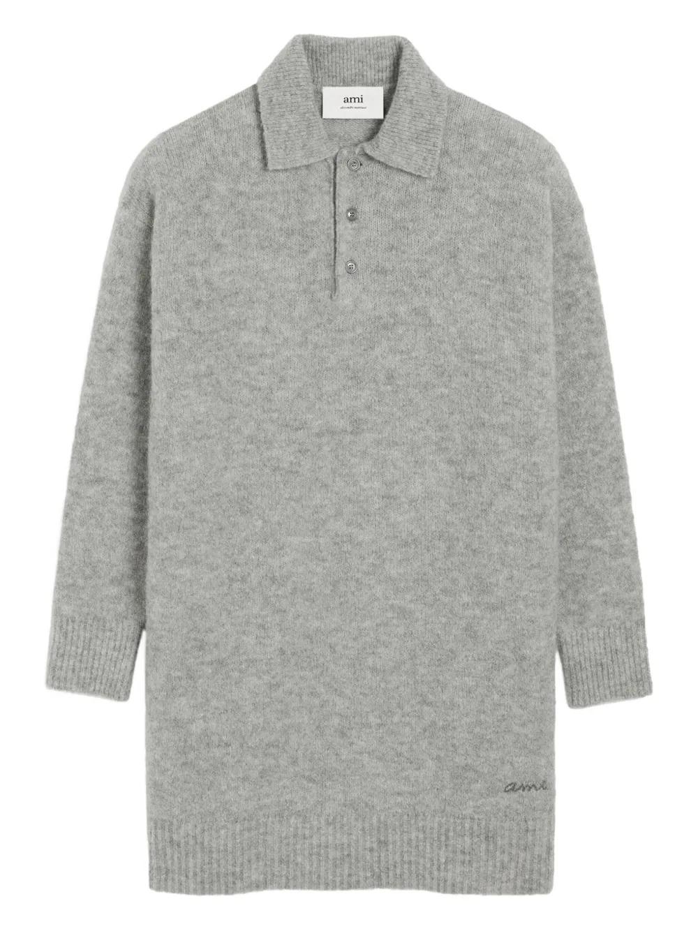 grey embroidered logo short front button fastening polo collar ribbed hem