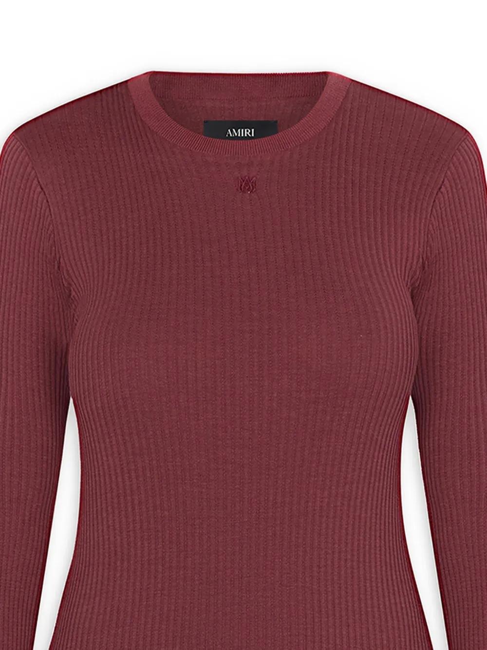 red ribbed knit round neck long sleeves