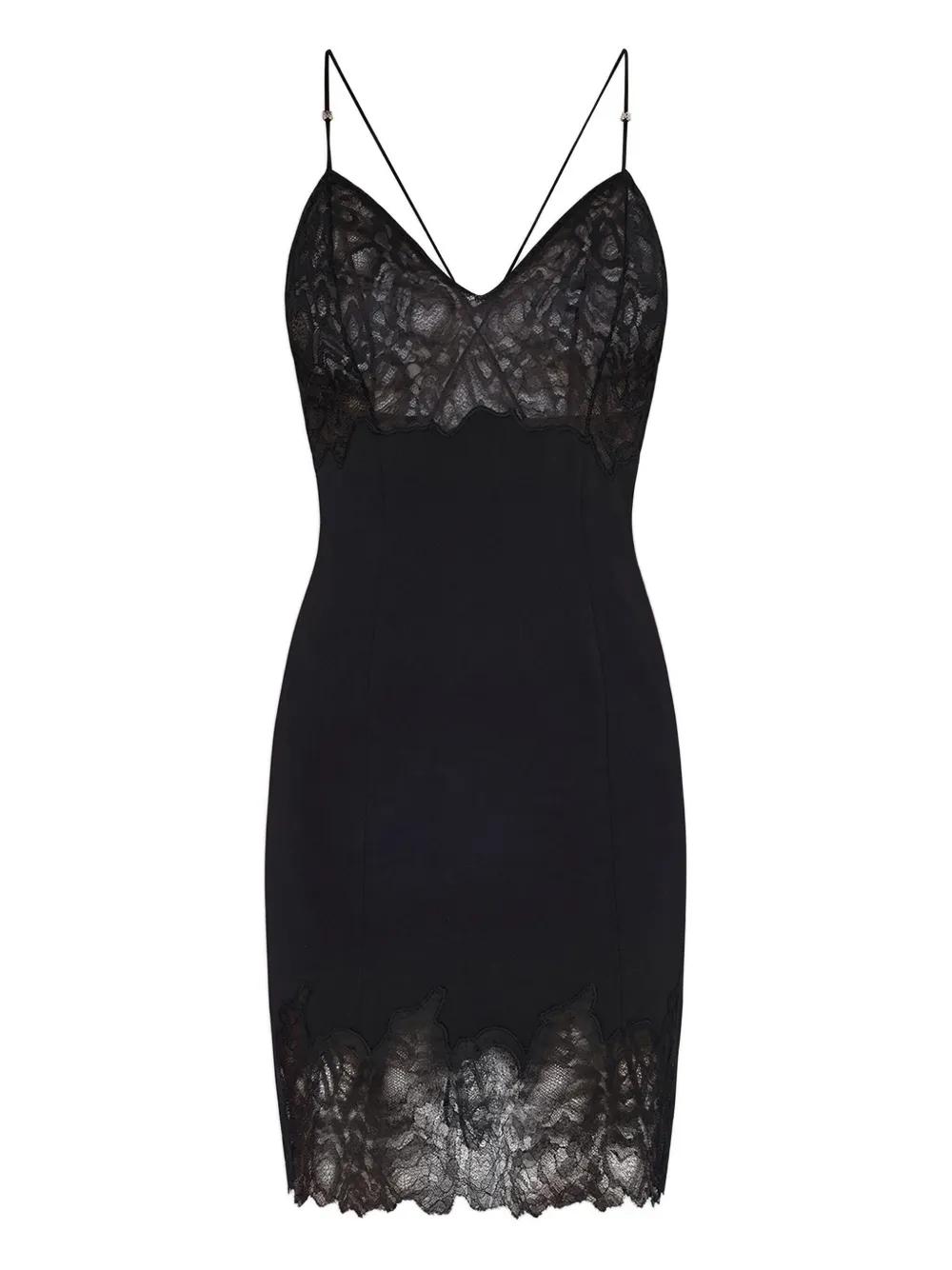 black off-shoulder neckline short sleeves fitted bodice gathered detail straight skirt