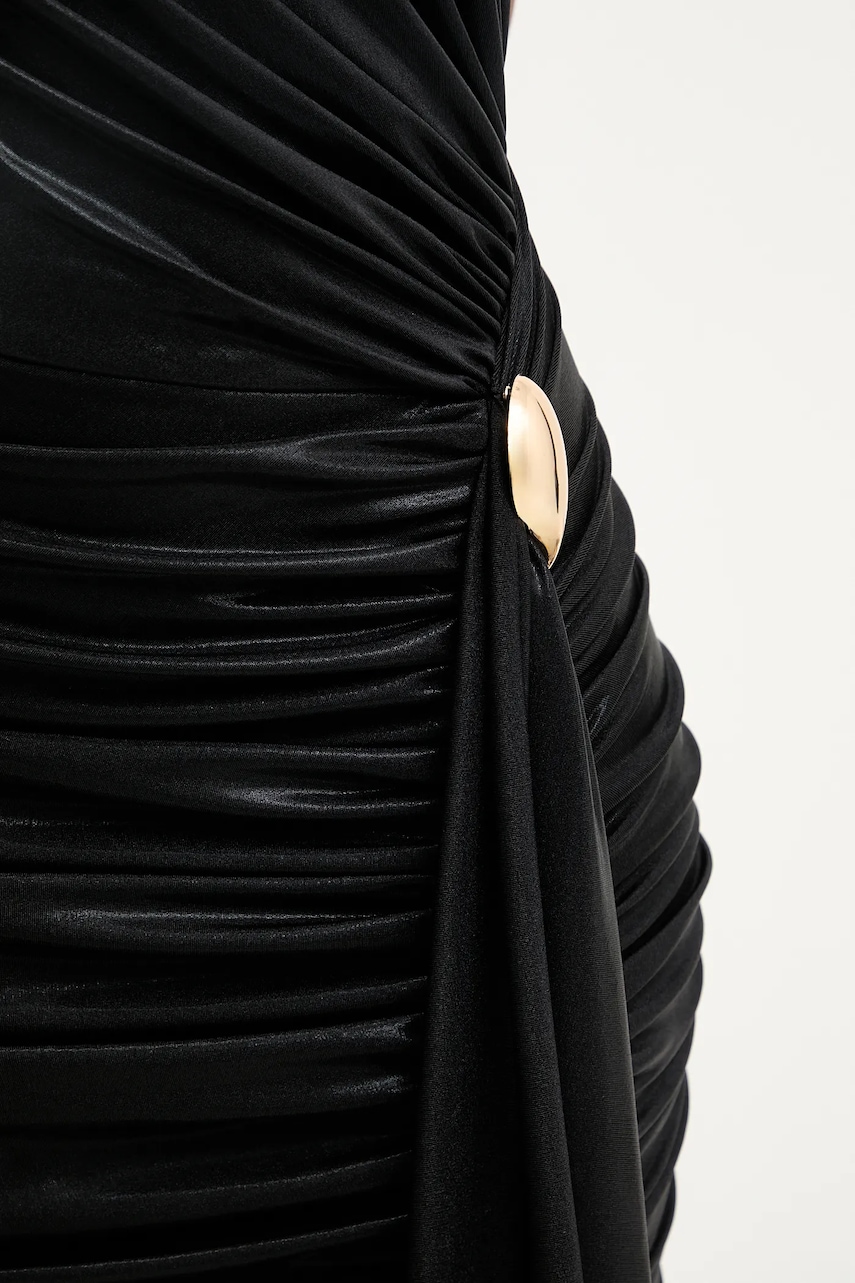 - Dopasowany fason z efektownymi marszczeniami. - Okrągły dekolt. - W ramiona wszyte poduszki. - Z tyłu kryte zapięcie na suwak. - Model z aplikacją. - Niewyjmowane wkładki lekko usztywniają i zapewniają dodatkowe krycie w biuście. - Dodatkowa warstwa materiału w postaci podszewki. - Długość sukienki: 43 cm. - Szerokość pod pachami: 43 cm. - Wymiary podane dla rozmiaru: S.