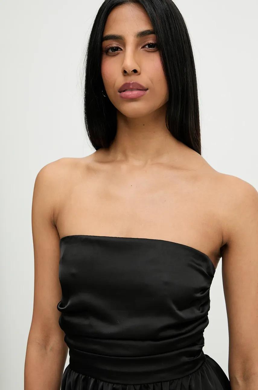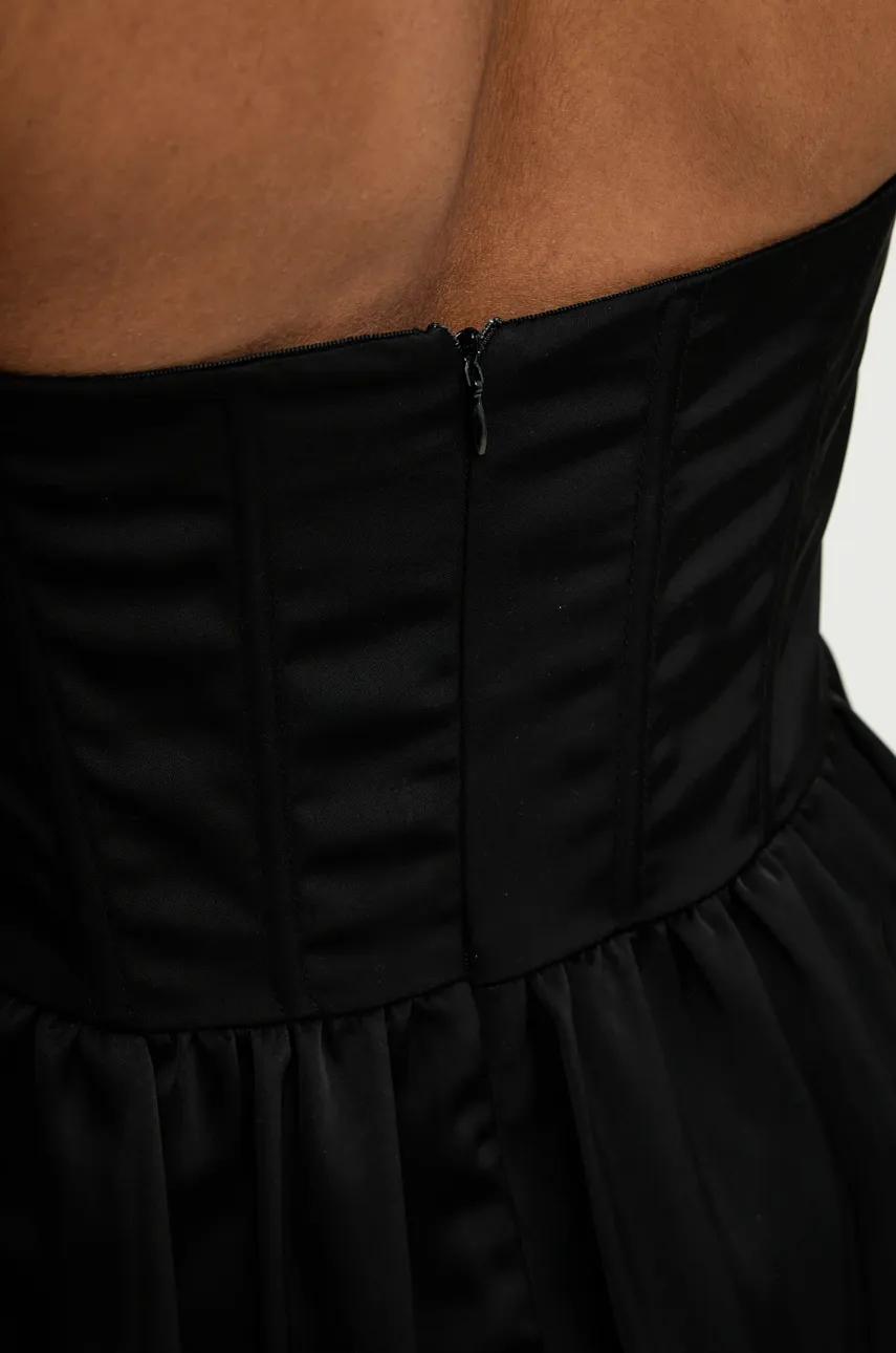 - Rozkloszowany fason. - Górna krawędź pokryta silikonem, który uniemożliwia zsuwanie się sukienki. - Z tyłu zapięcie na kryty suwak. - Ozdobne marszczenia. - Dolna krawędź wykończona wygodnym, elastycznym ściągaczem. - Dodatkowa warstwa materiału w postaci podszewki. - Model wykonany z materiału o satynowym splocie. - Długość: 61 cm. - Szerokość pod pachami: 39 cm. - Szerokość w talii: 34 cm. - Wymiary podane dla rozmiaru: S.