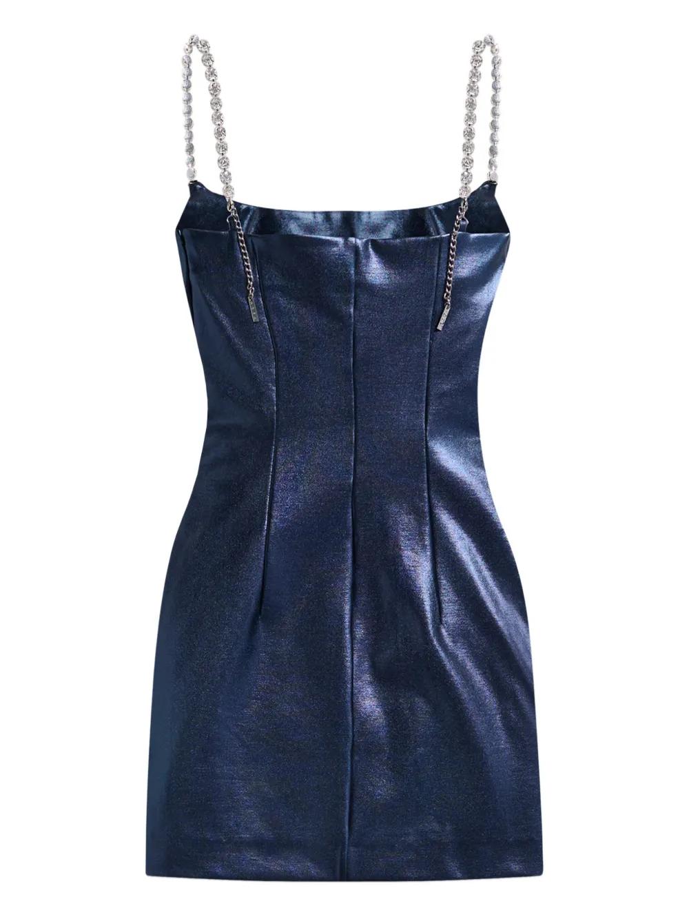 grey blue metallic effect crystal strap embellishment mini length sleeveless