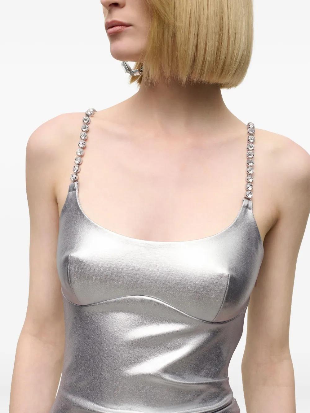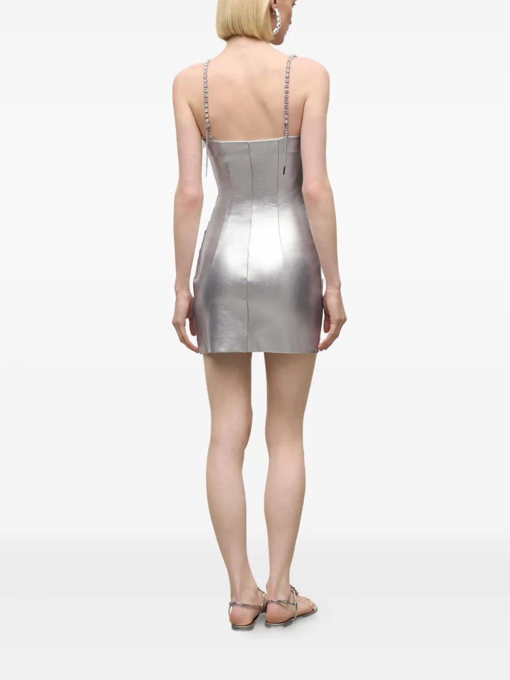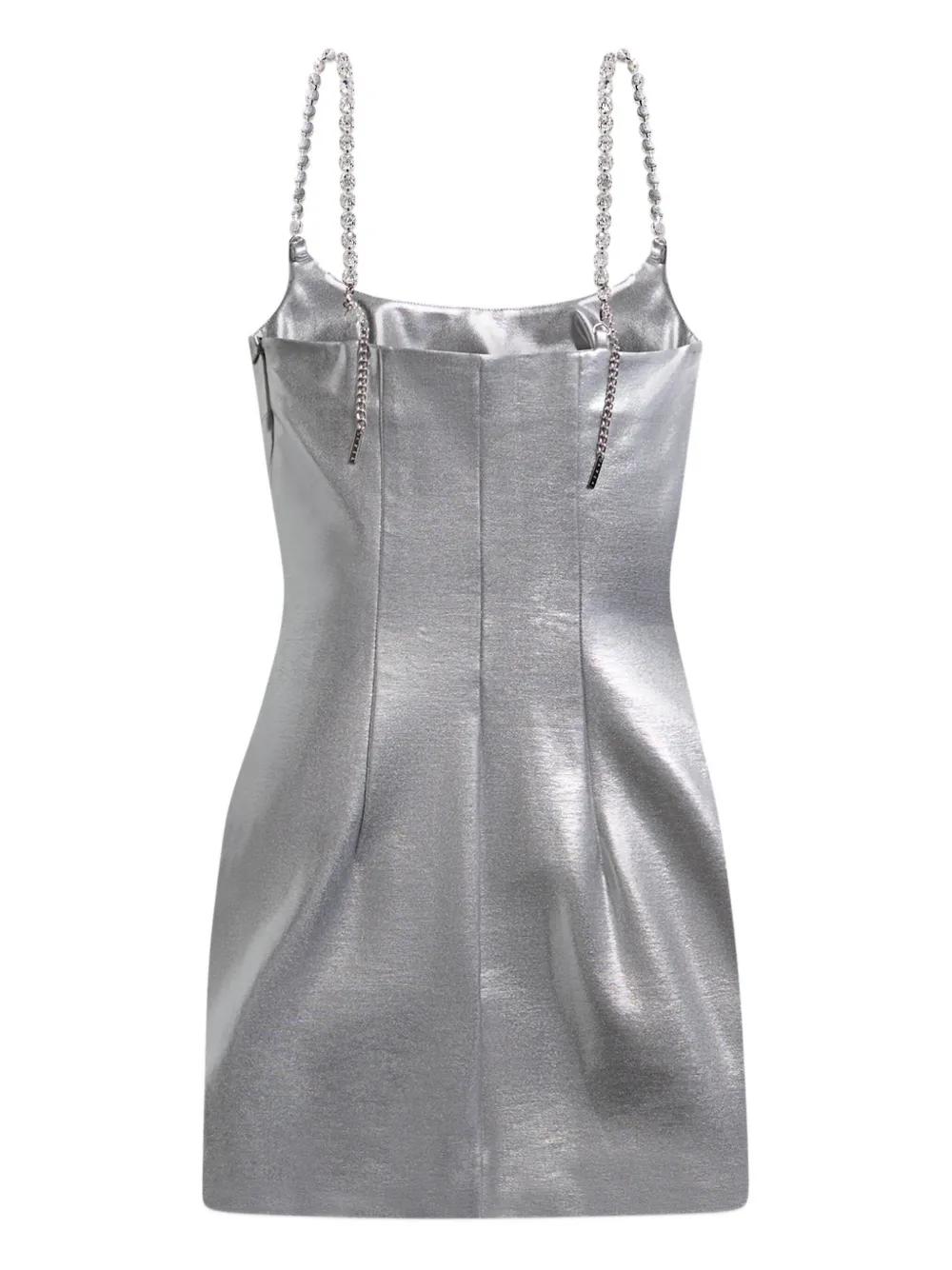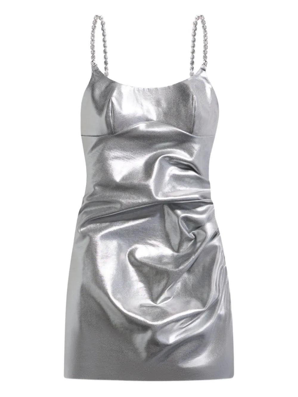 AREA crystal-strap metallic mini dress - Silver