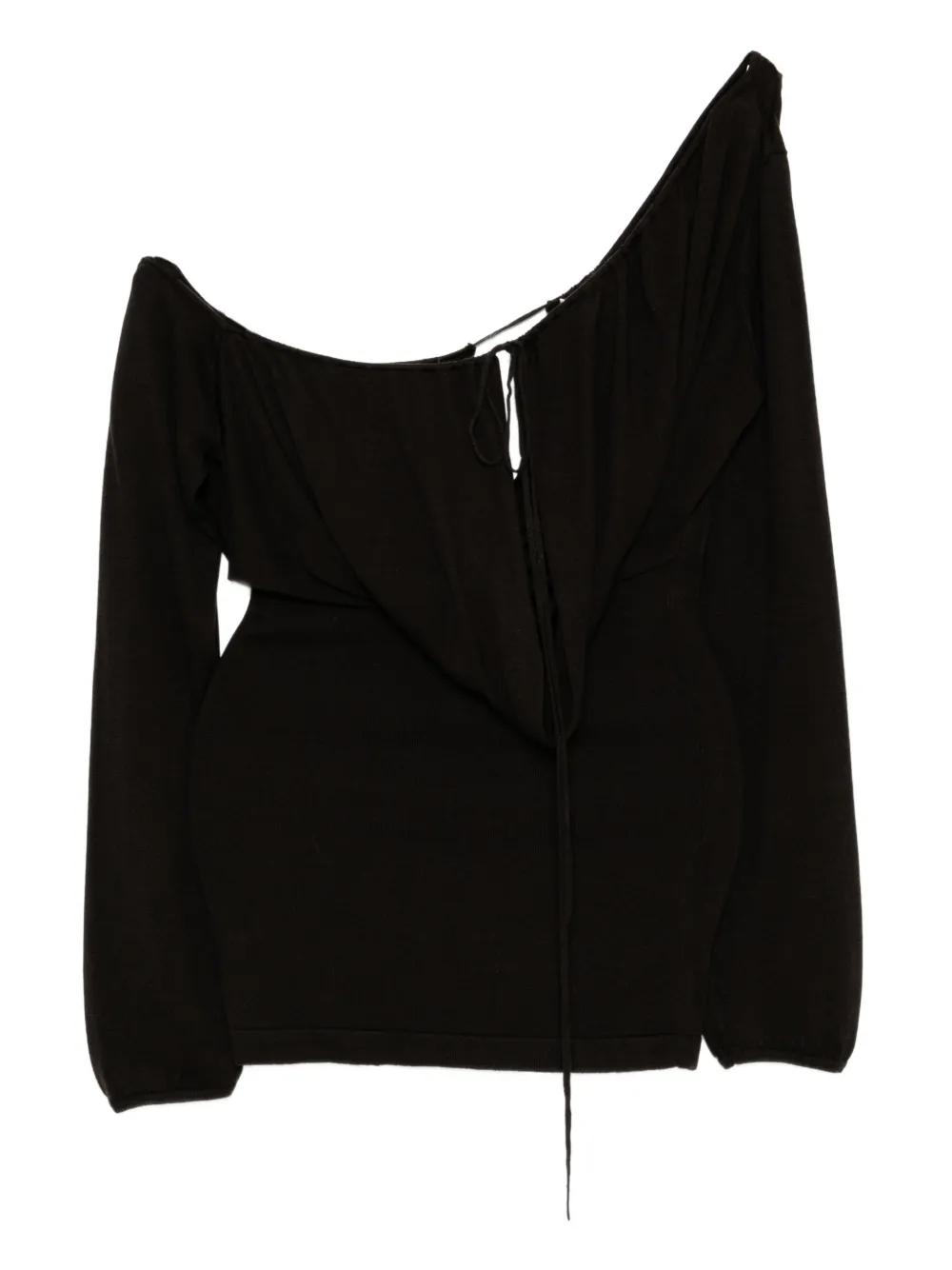 chocolate brown front tie fastening asymmetric neck long sleeves draped design
