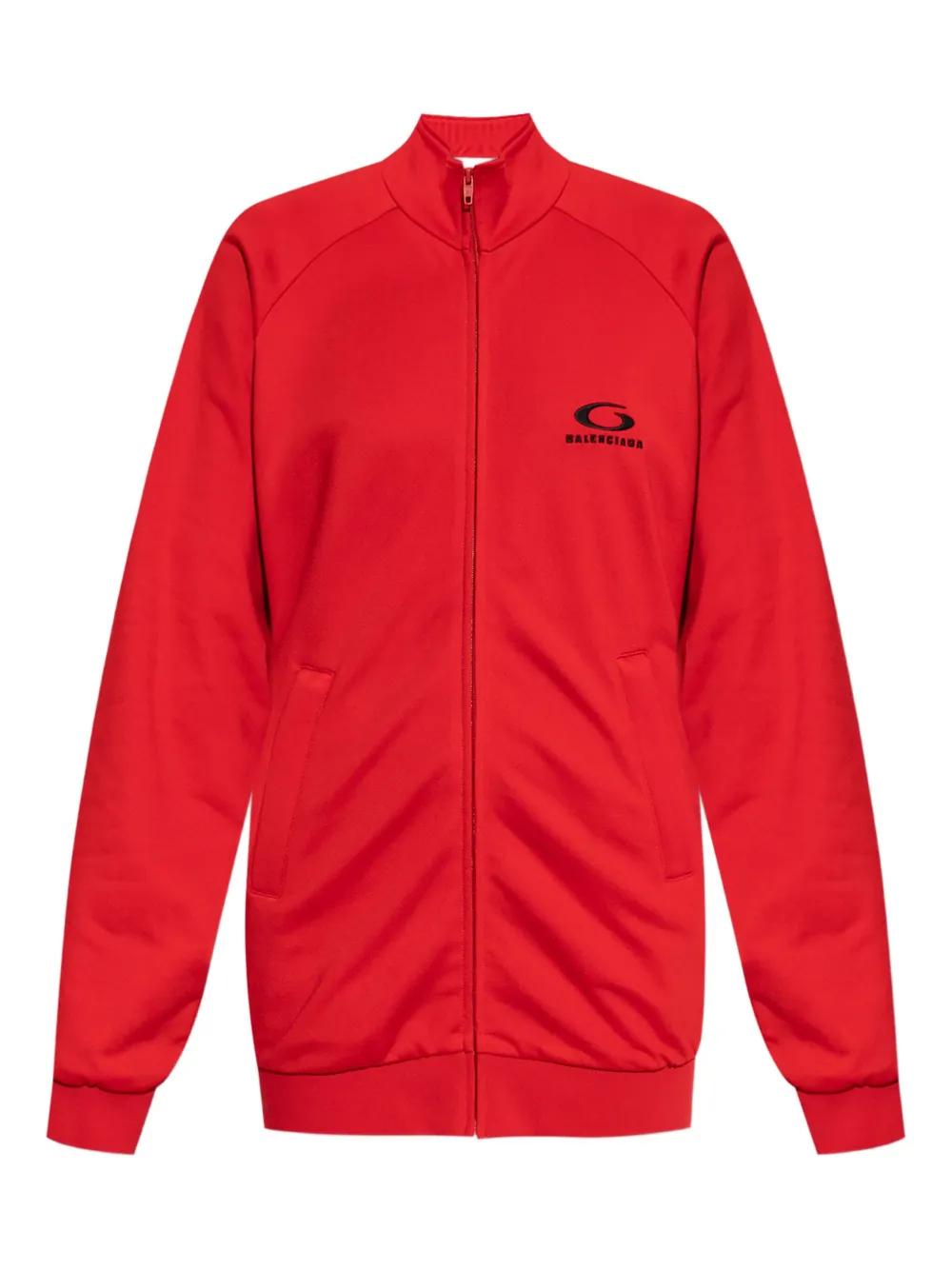 red zip fastening high neck open back raglan sleeves logo-detail