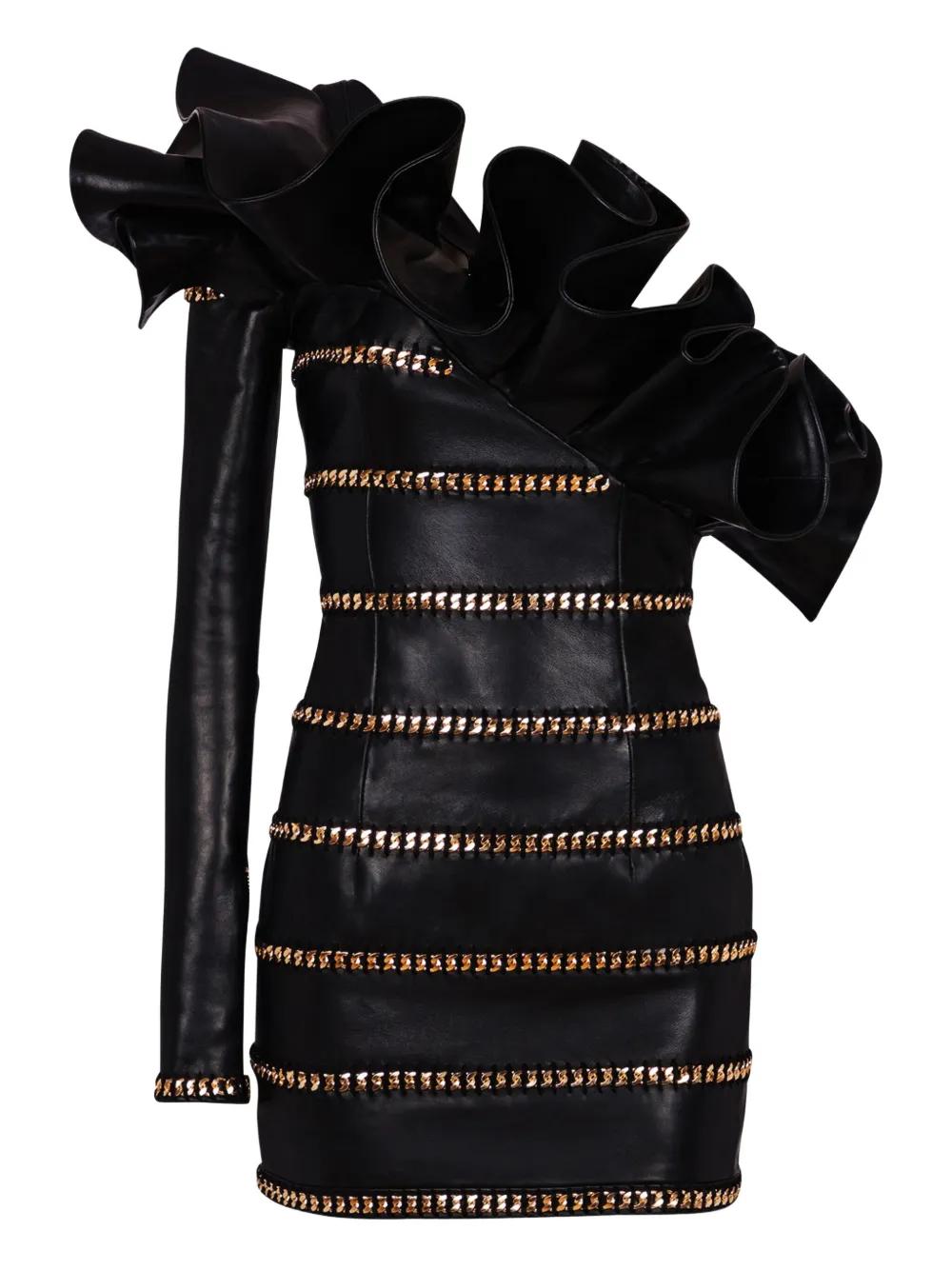 Balmain asymmetric leather mini dress - Black
