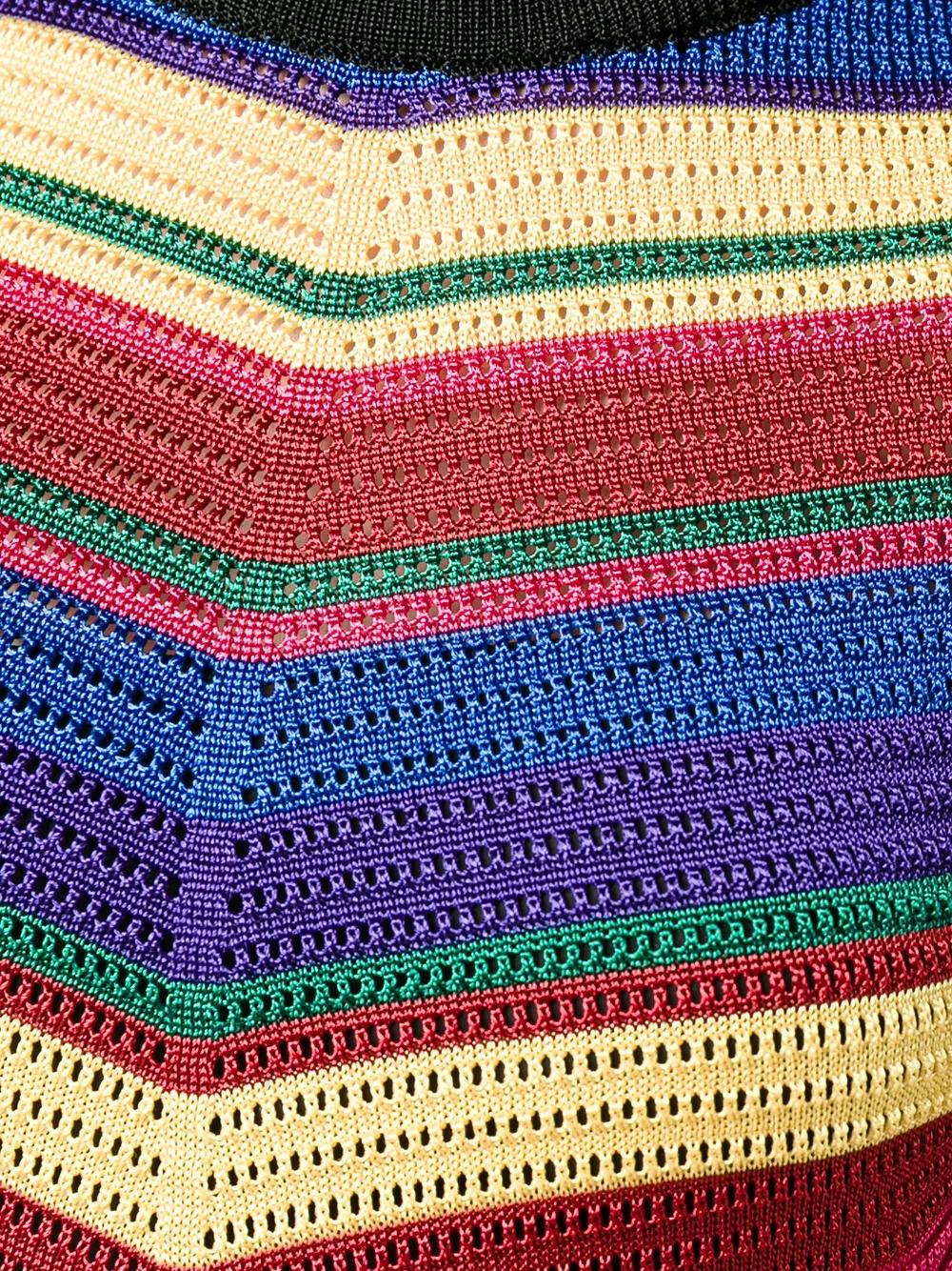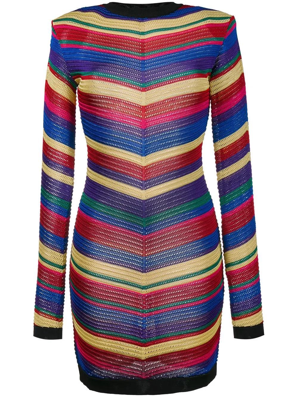 Multicoloured chevron knit dress from Balmain featuring a round neck, a striped pattern, long sleeves, a woven effect and a short length.