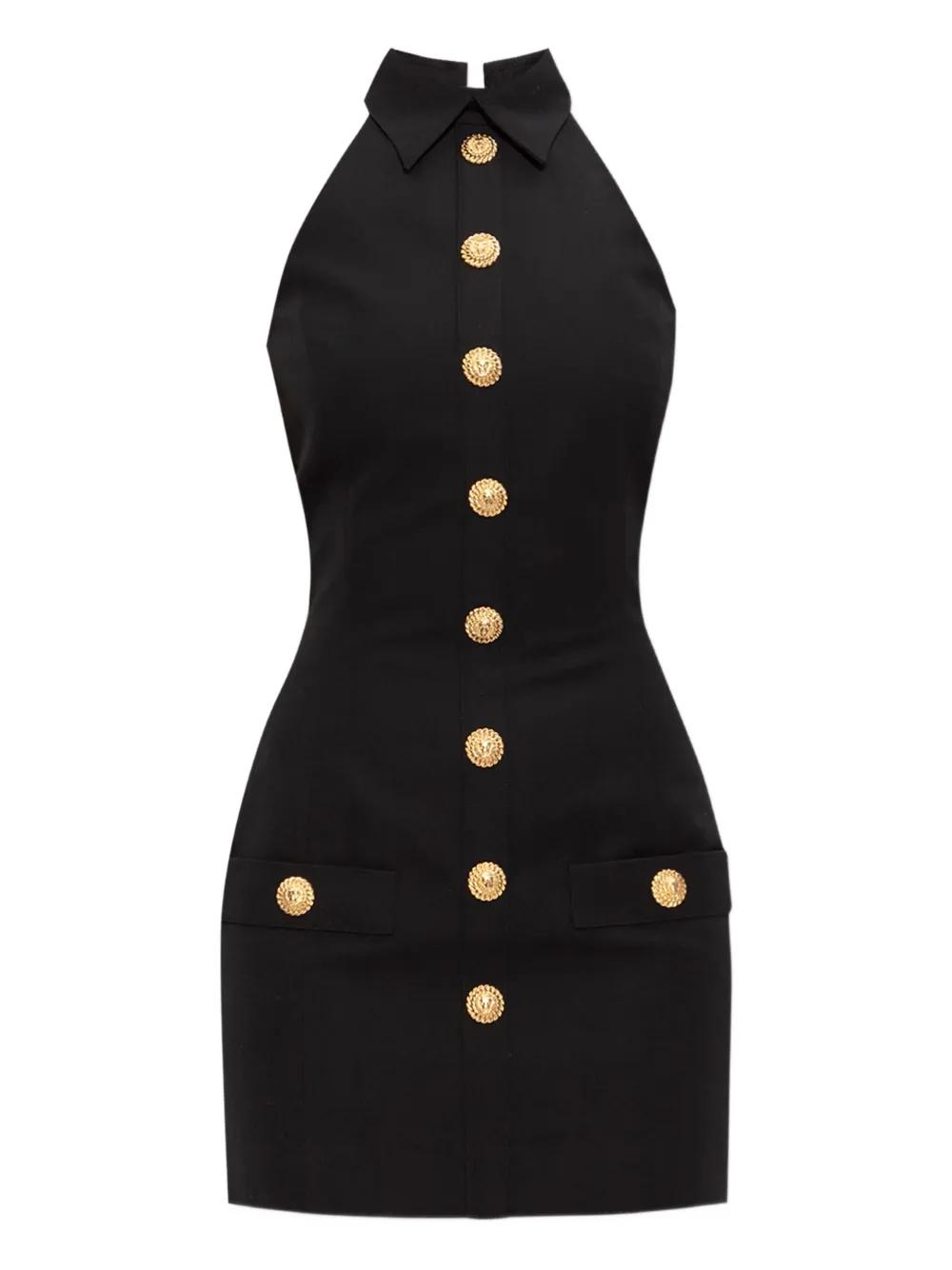Balmain halterneck buttoned mini dress - Black