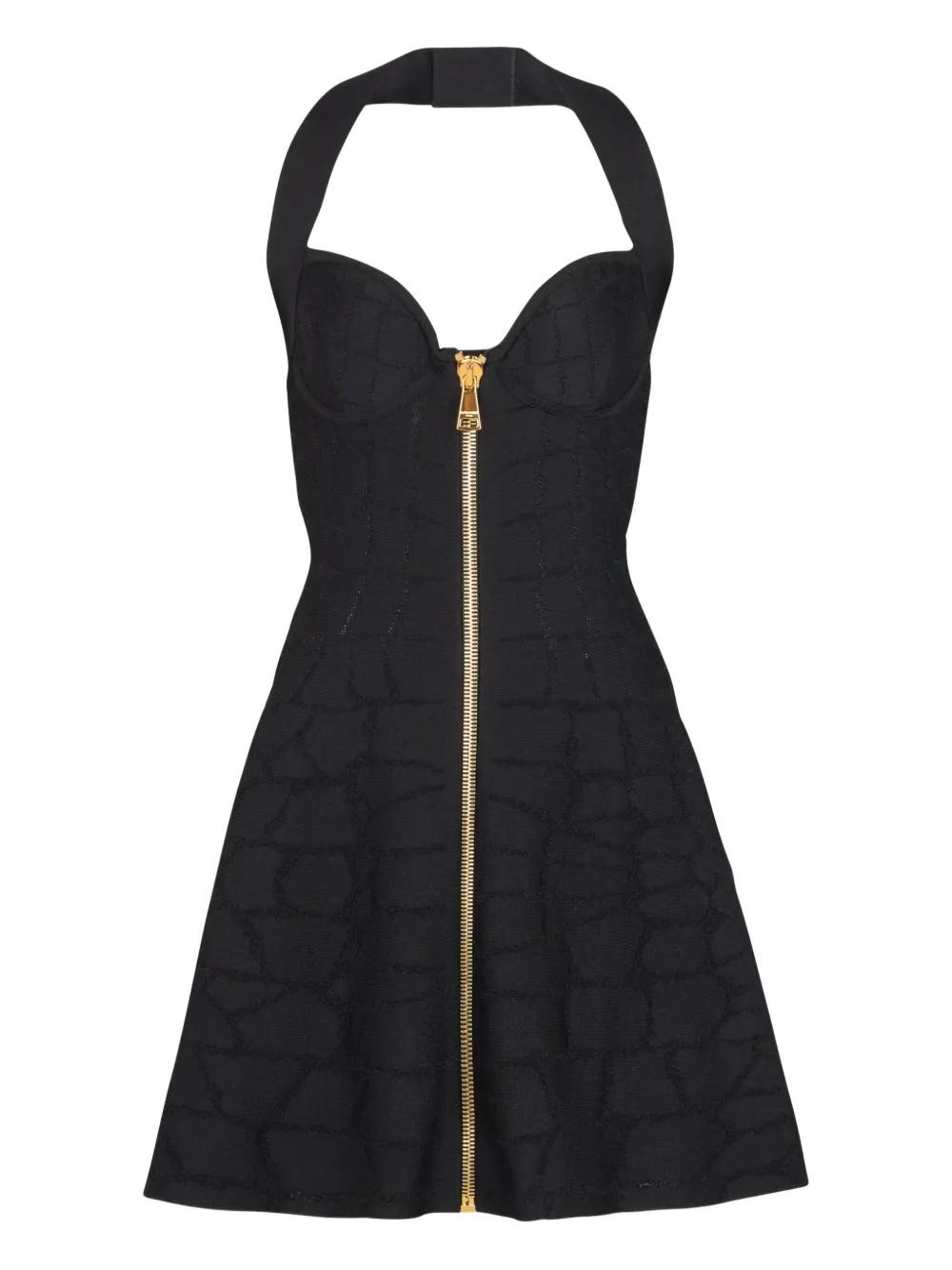 Balmain halterneck zip-front mini dress - Black