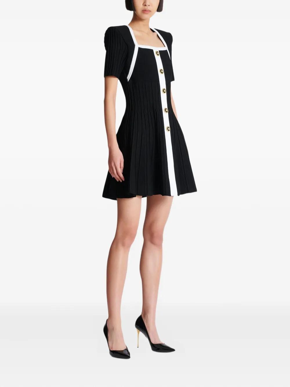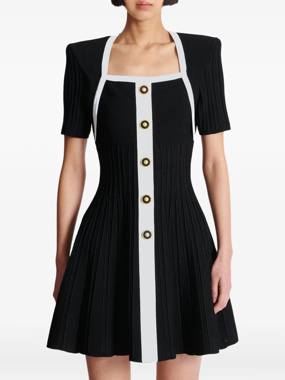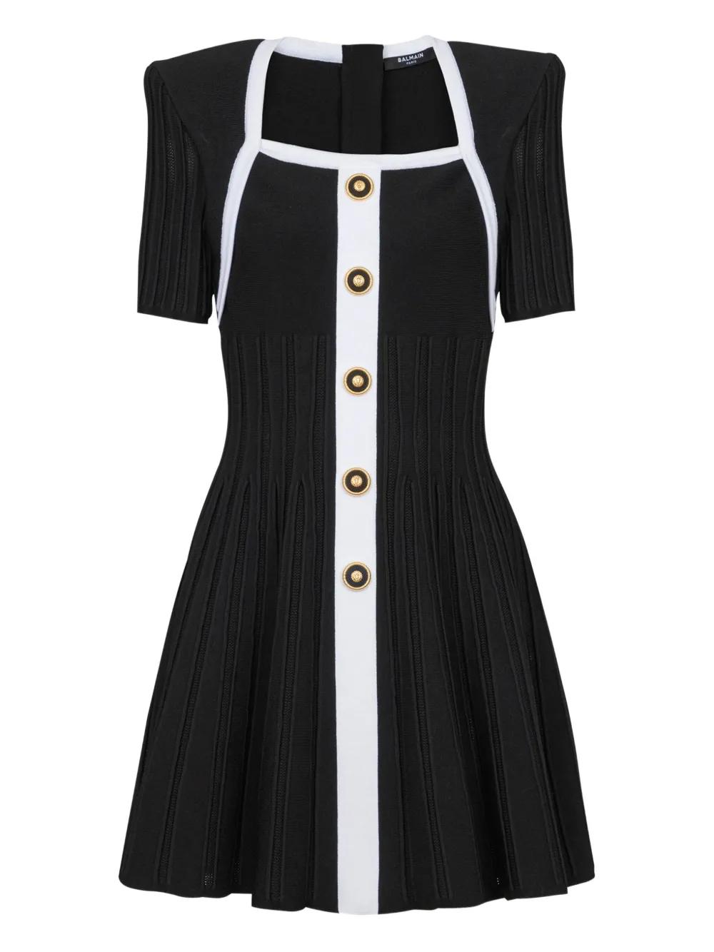 black concealed rear zip fastening decorative button detailing two-tone design shoulder pads