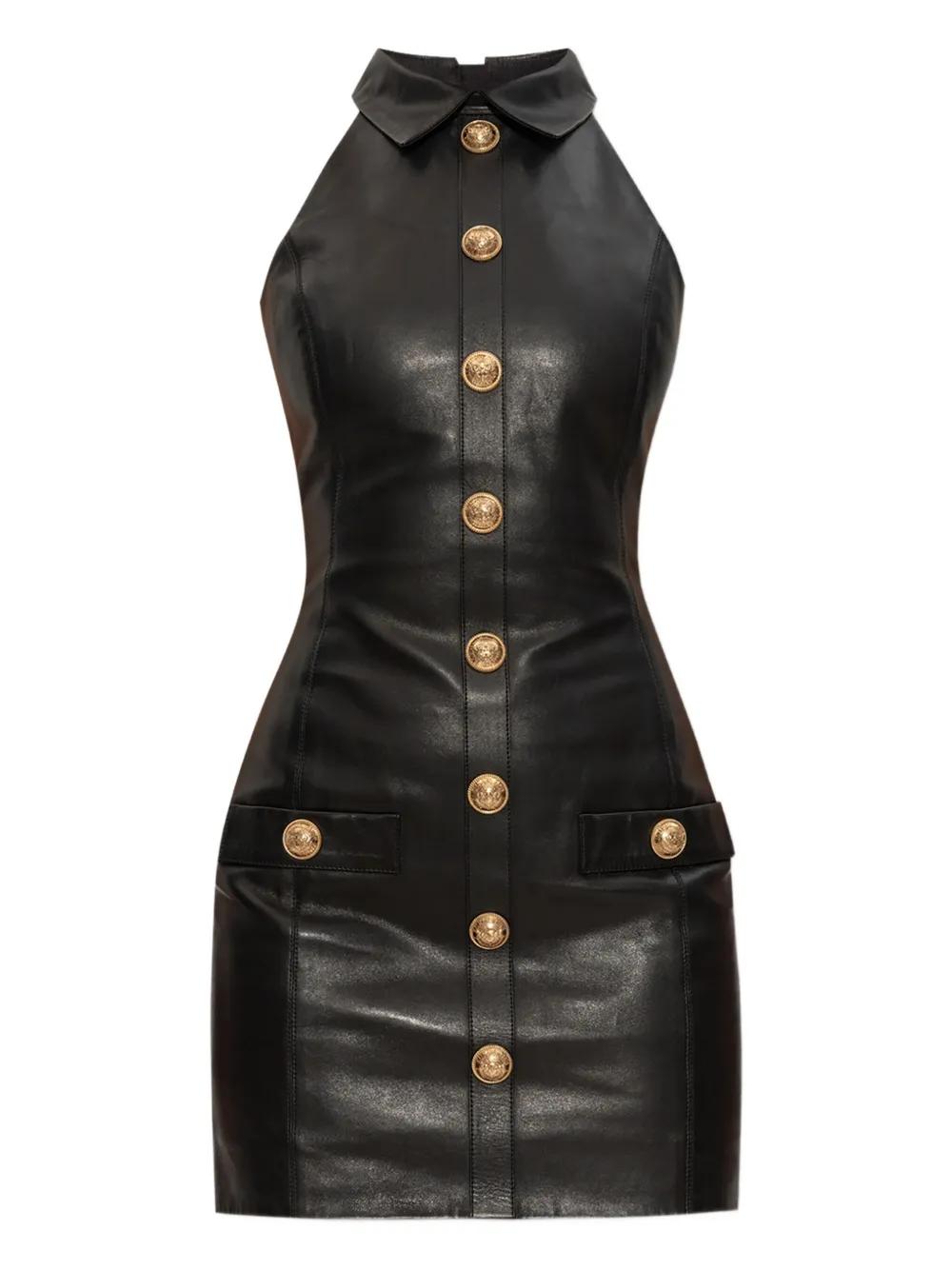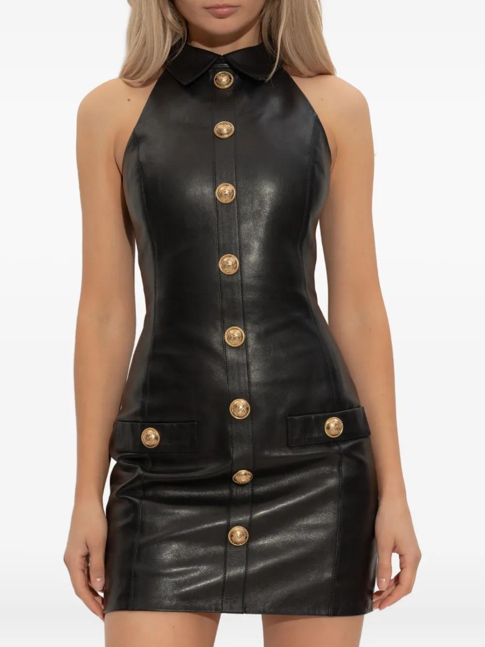 Balmain leather buttoned mini dress - Black