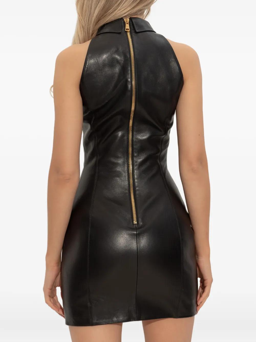 black lambskin leather gold button embellishments sleeveless halter neck concealed zip fastening