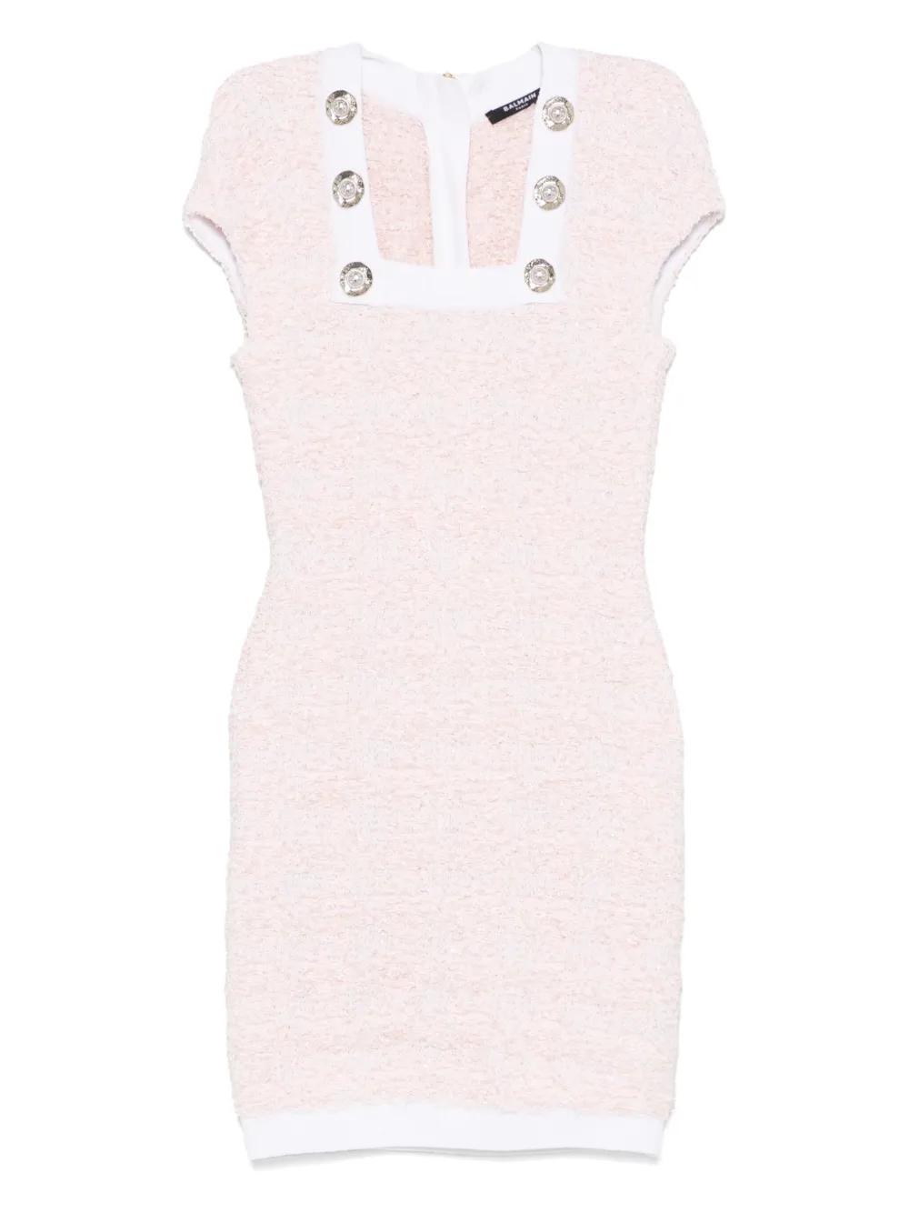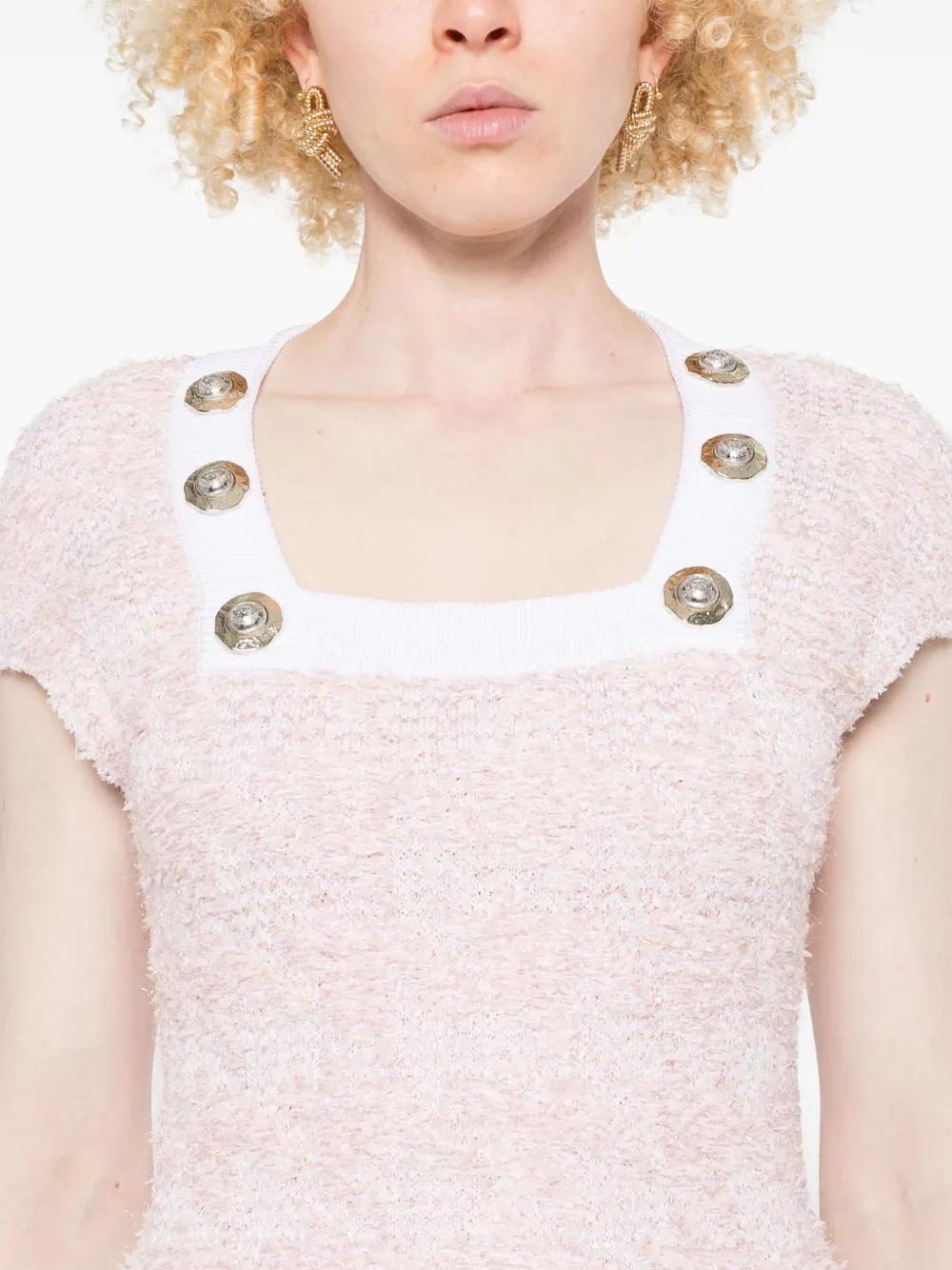 rose pink exposed rear zip fastening square neck short sleeves decorative button detailing
