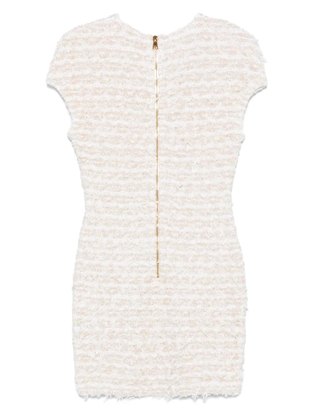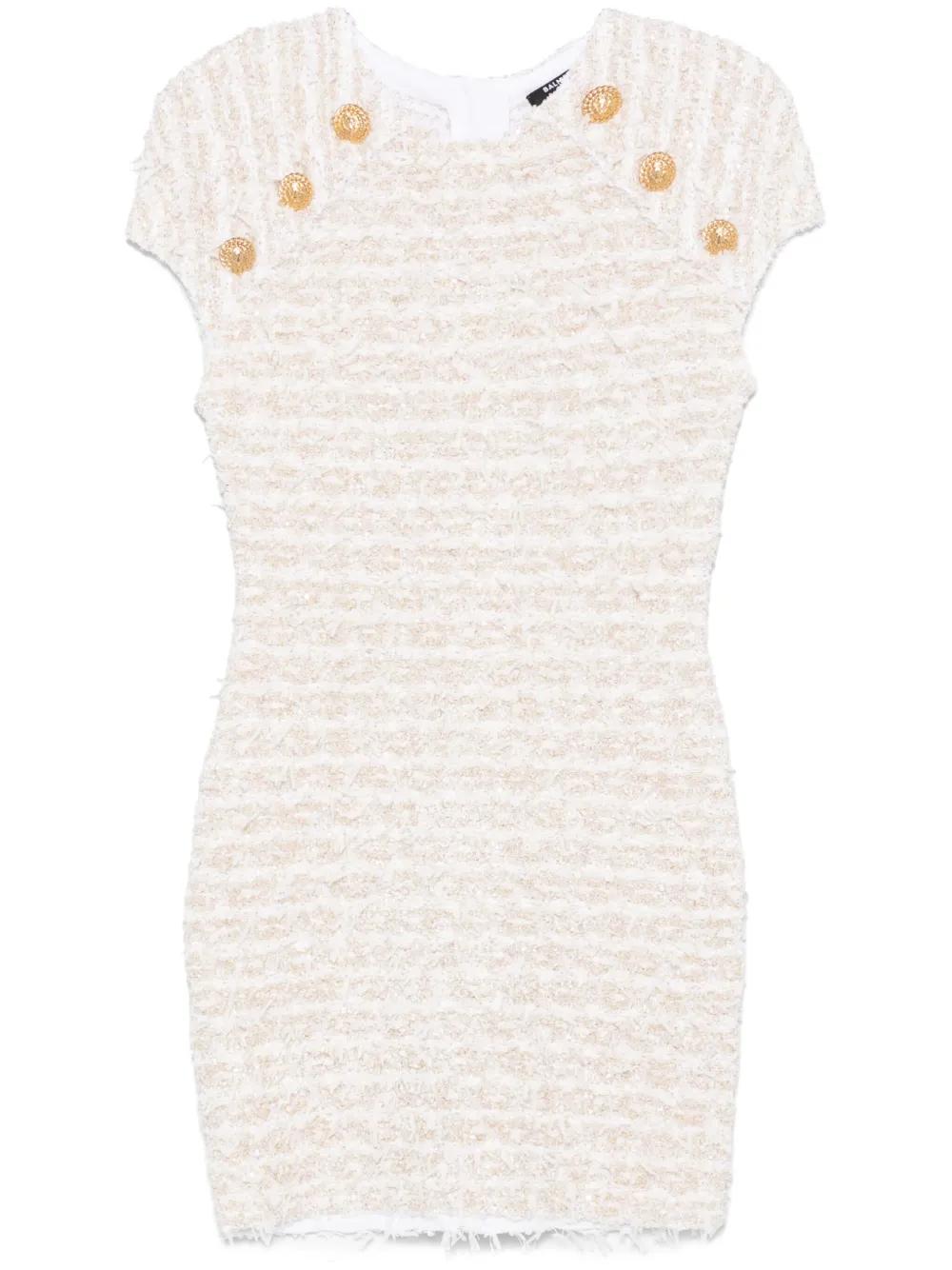 white exposed rear zip fastening crew neck short sleeves embossed gold-tone buttons