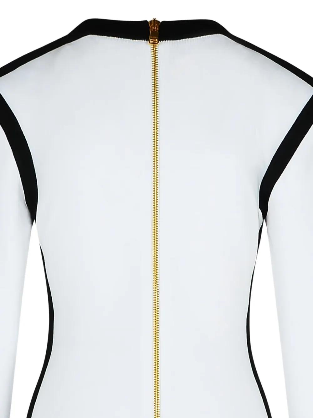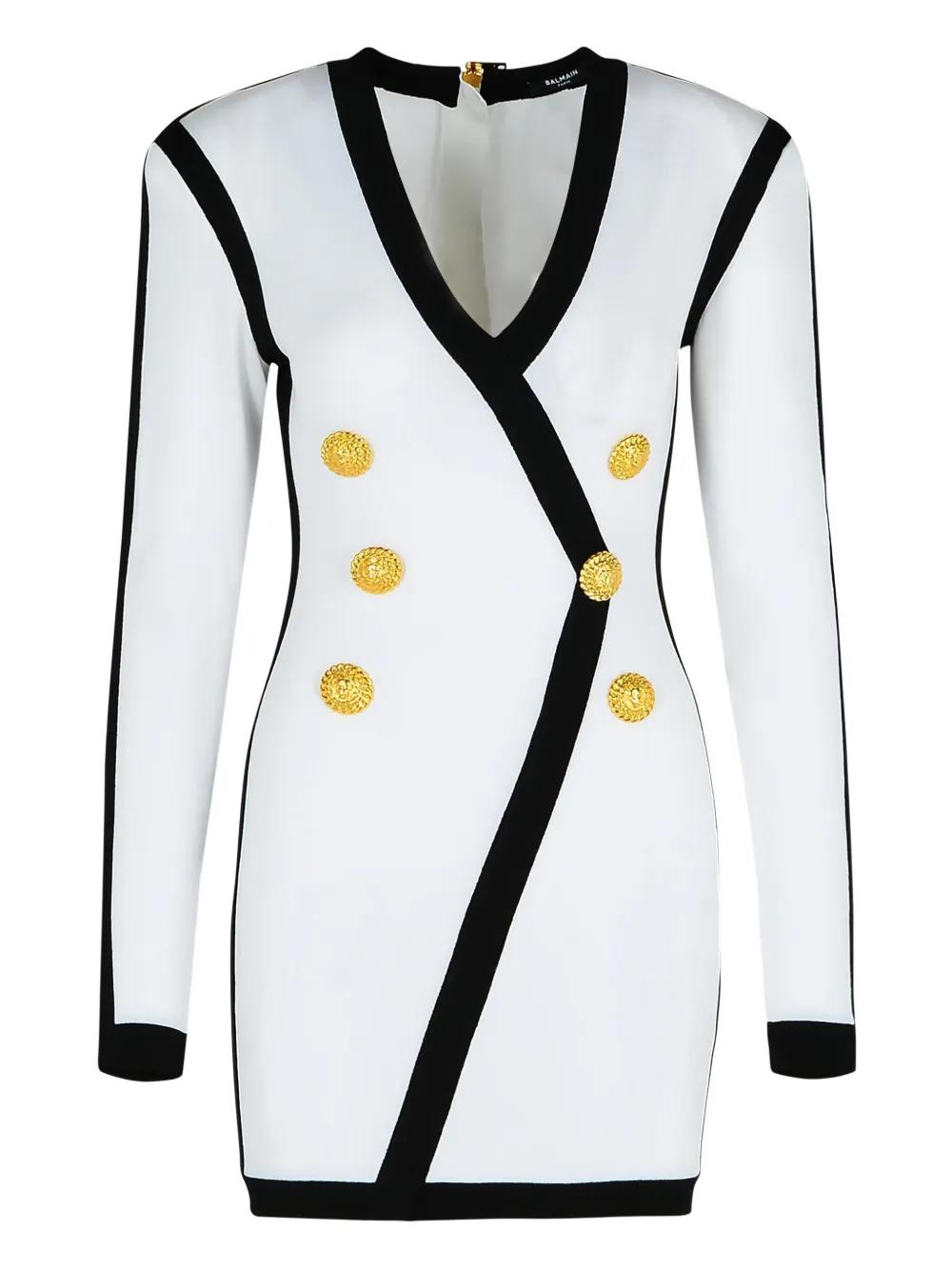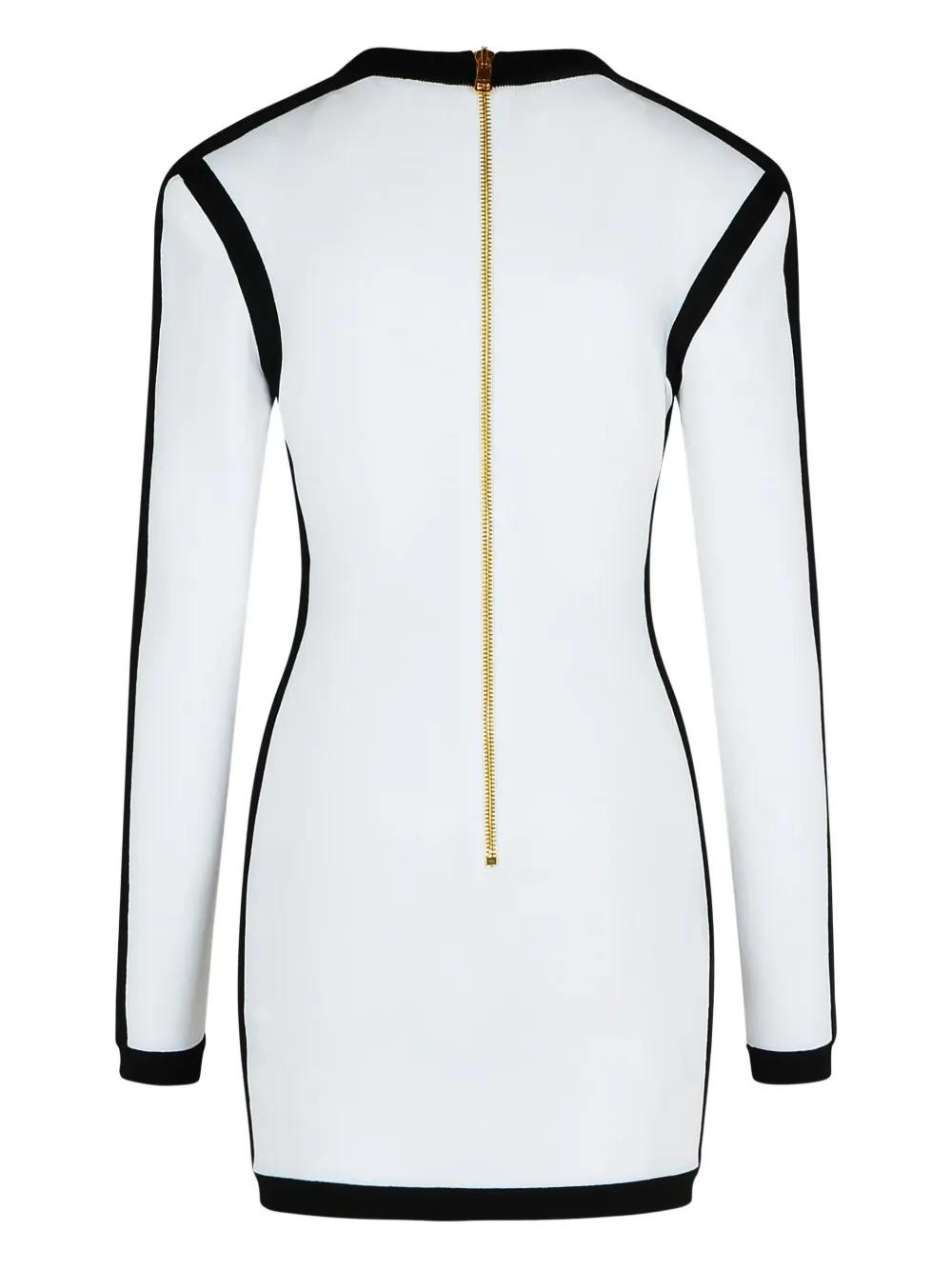 white black contrast trim V-neck long sleeves gold-tone buttons
