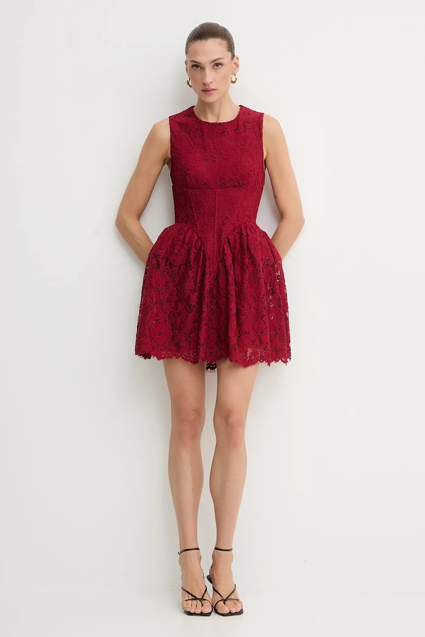 Bardot sukienka kolor bordowy mini rozkloszowana 60091DB