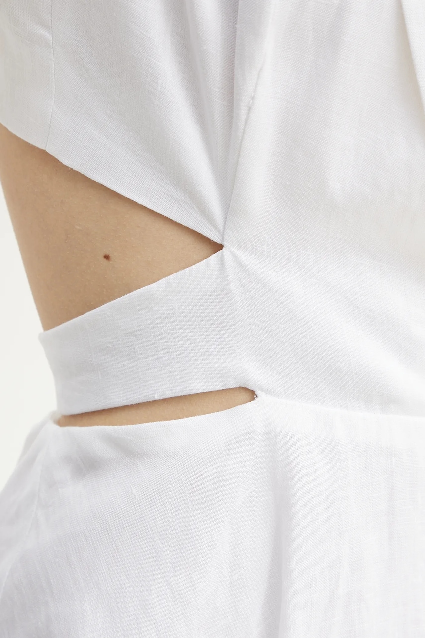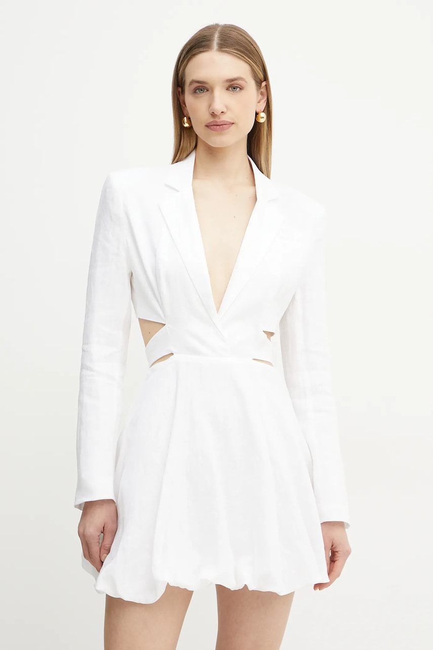 Bardot sukienka lniana kolor biały mini prosta 59860DB