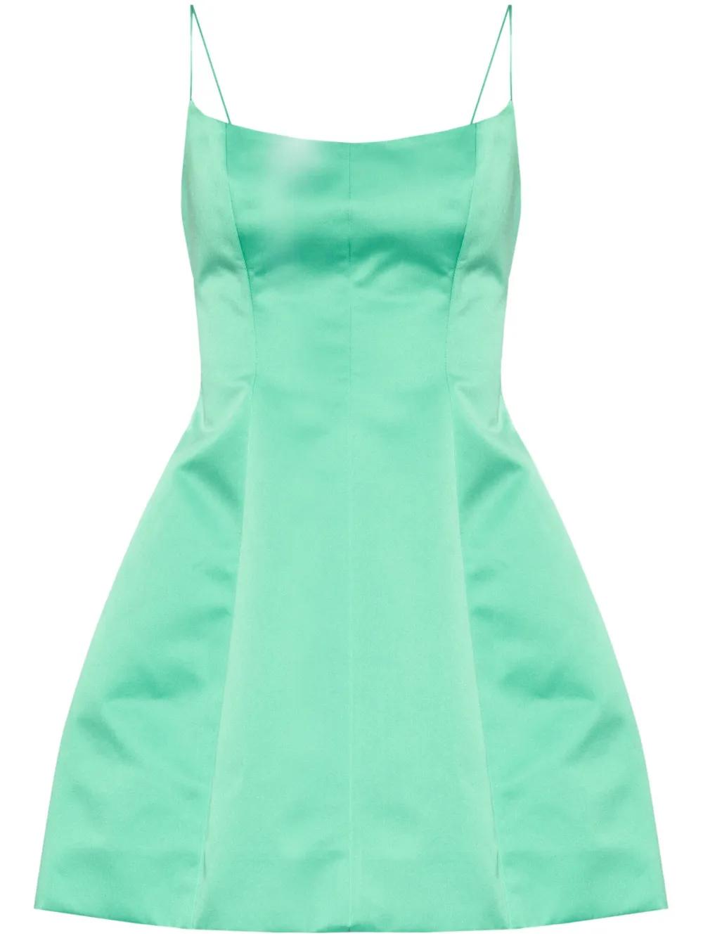 mint green concealed rear zip fastening square neck spaghetti straps A-line