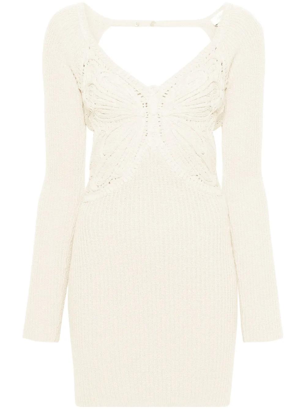 Blumarine butterfly-embroidered ribbed midi dress - Neutrals