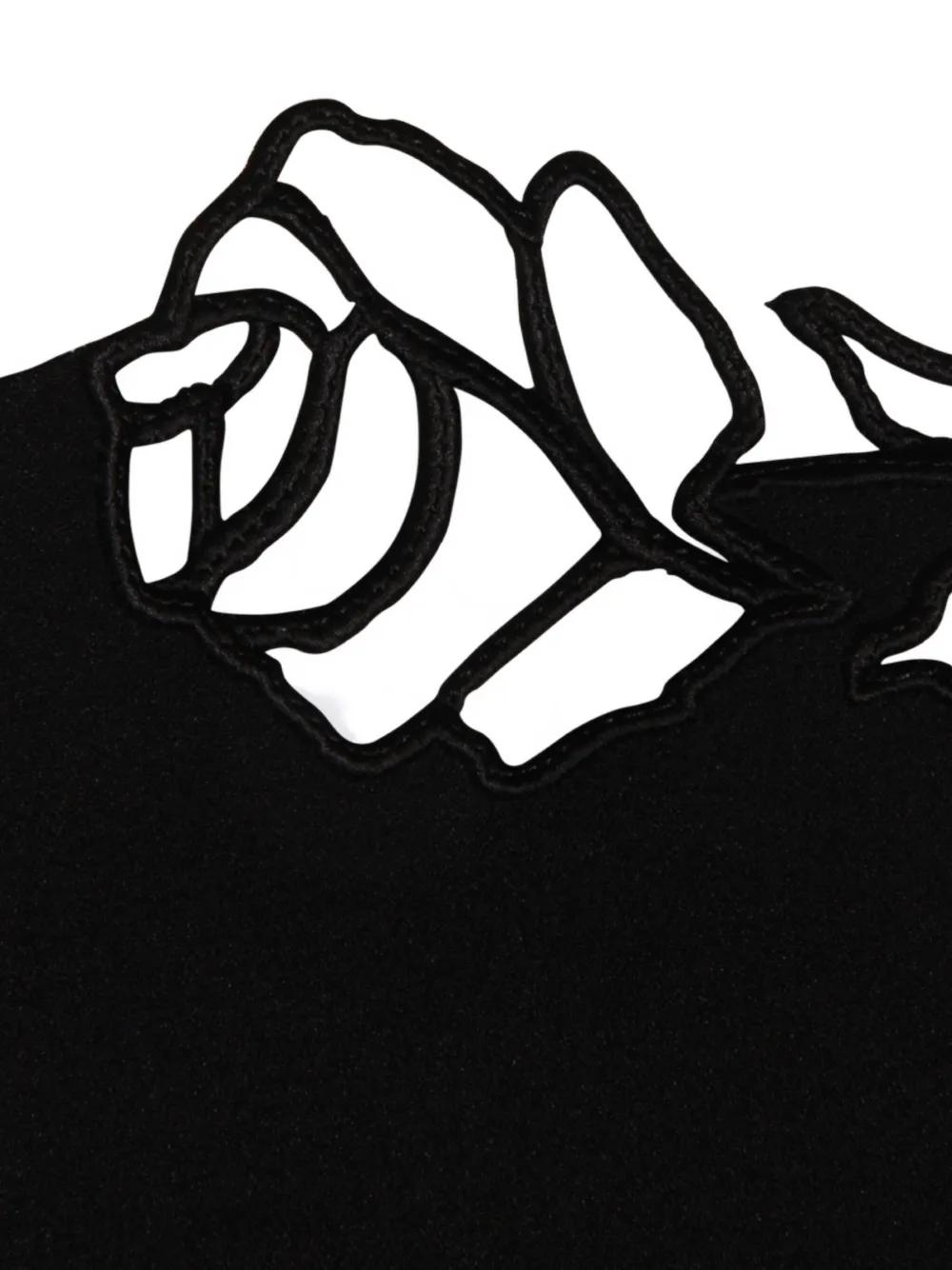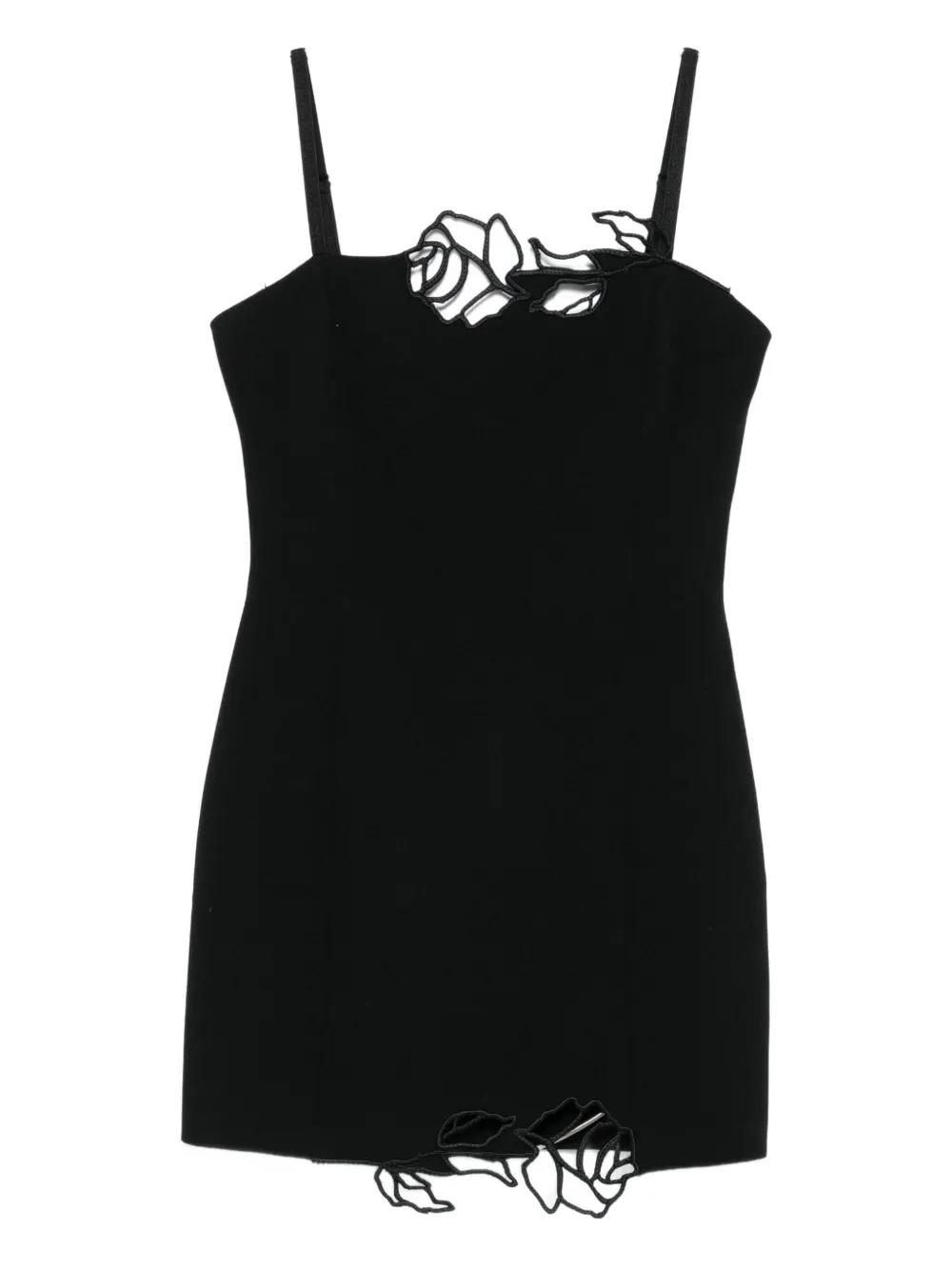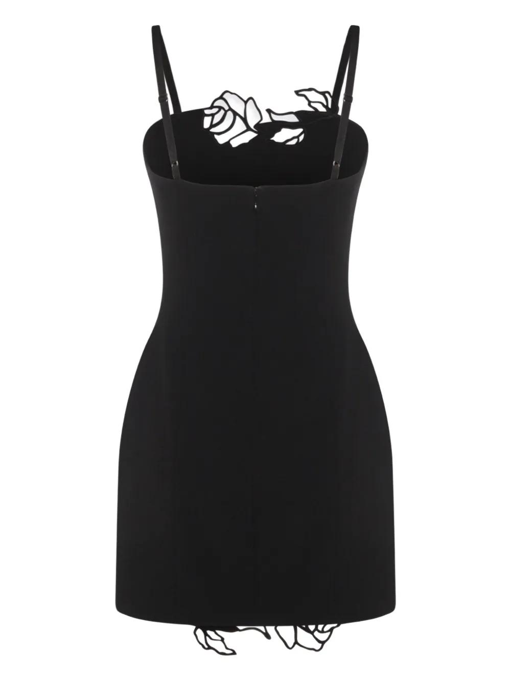 black rose cut-outs spaghetti straps square neckline fitted bodice mini length