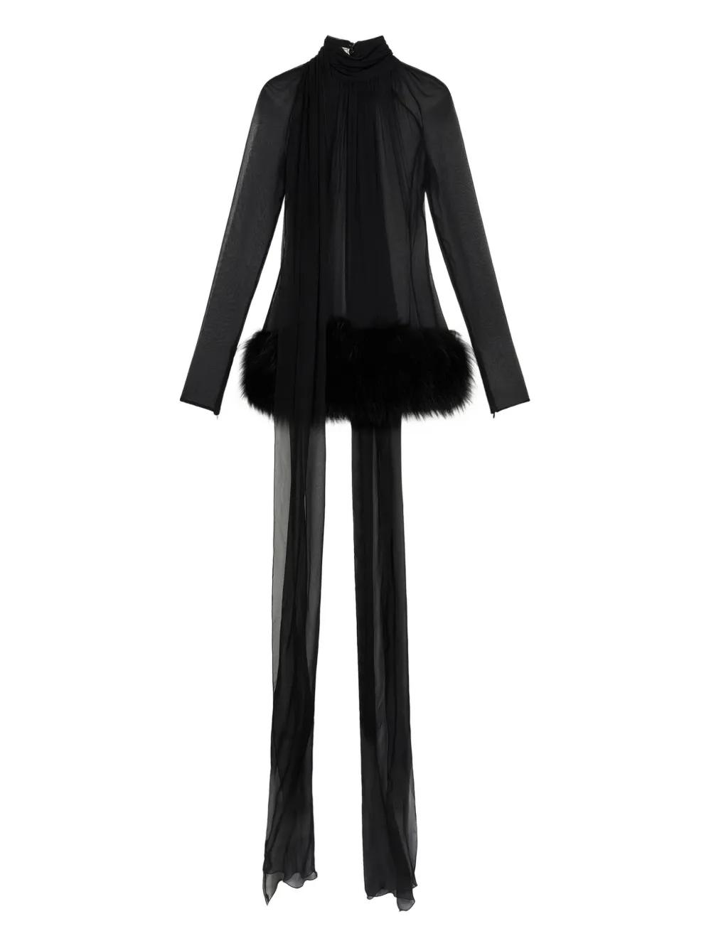 black rear tie fastening keyhole neck short slit sleeves elasticated hem