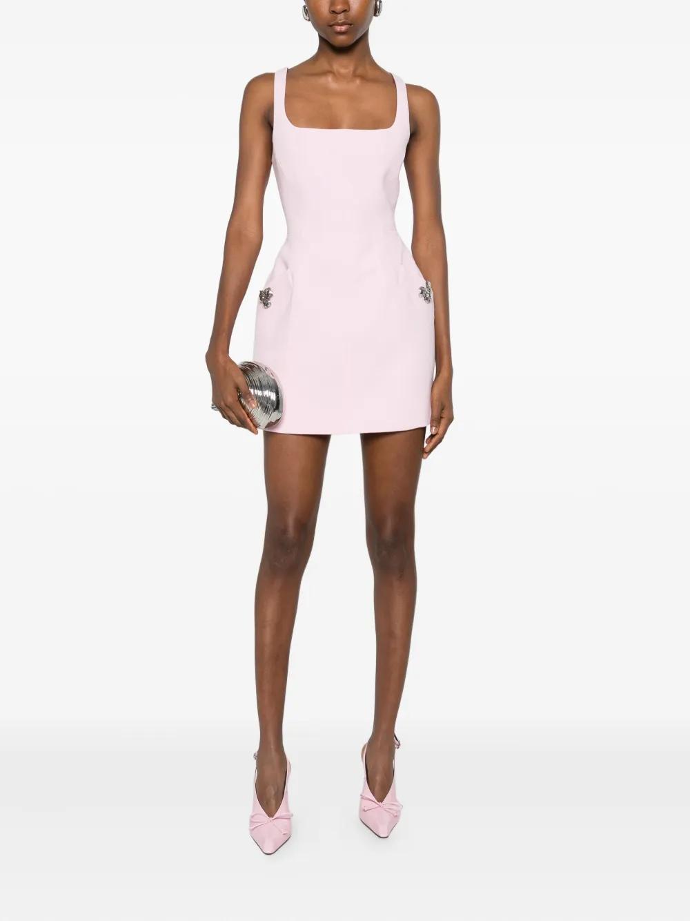 light pink square neck embellished pockets sleeveless concealed rear zip fastening thigh length