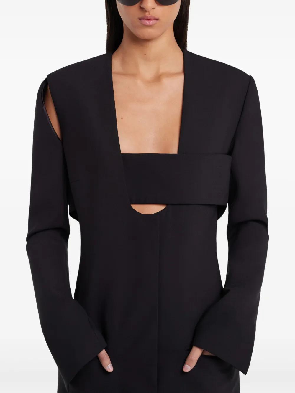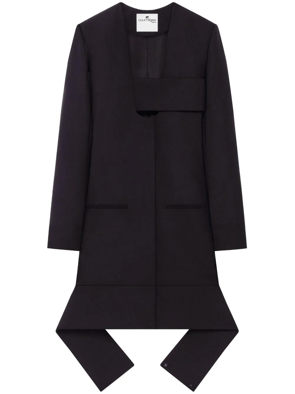 black cut-out detailing two front jetted pockets scoop neck asymmetric hem