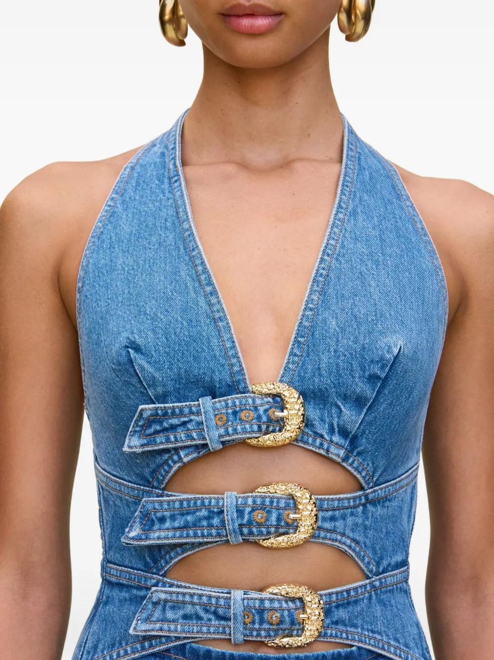 indigo blue buckle-strap fastening concealed rear zip fastening cut-out detailing sleeveless