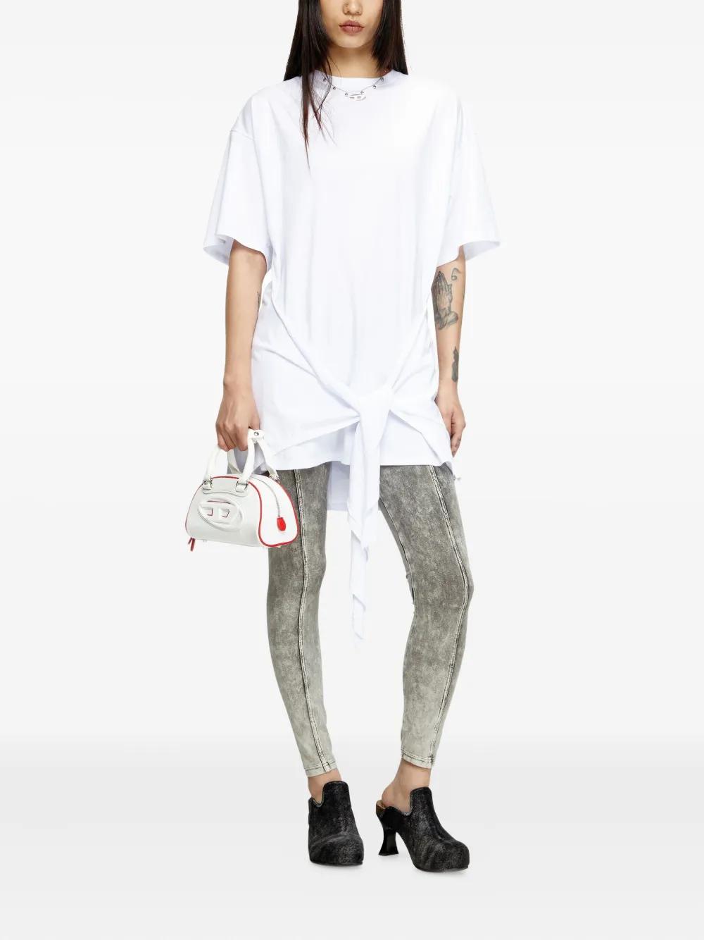 black rear tie fastening keyhole neck short slit sleeves elasticated hem