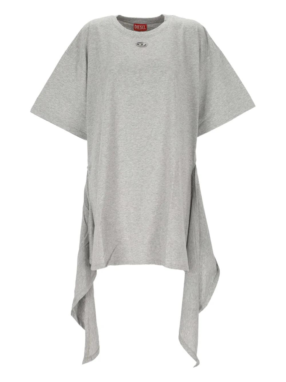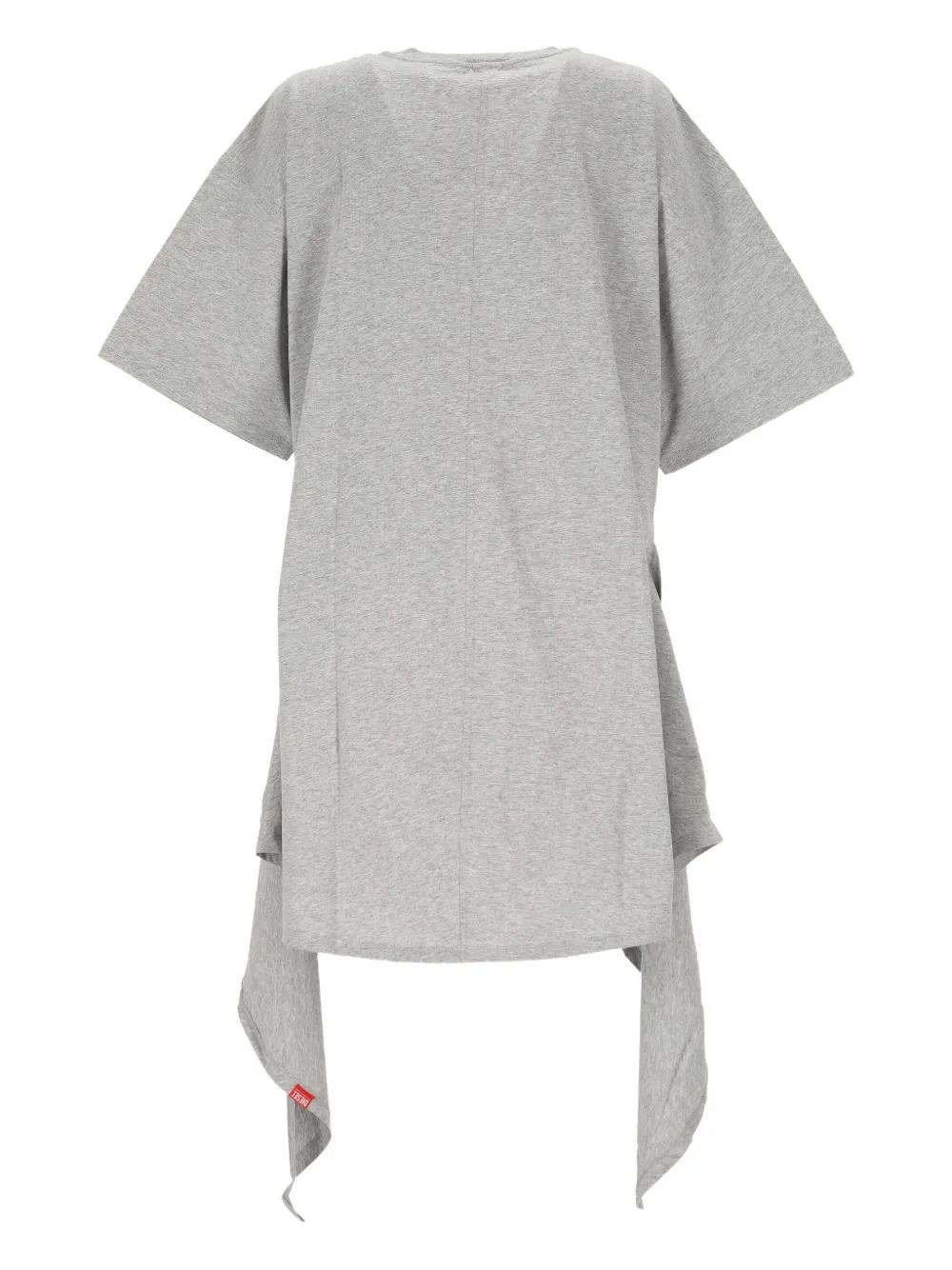 grey logo detail short sleeves crew neck side tie detail asymmetric hem