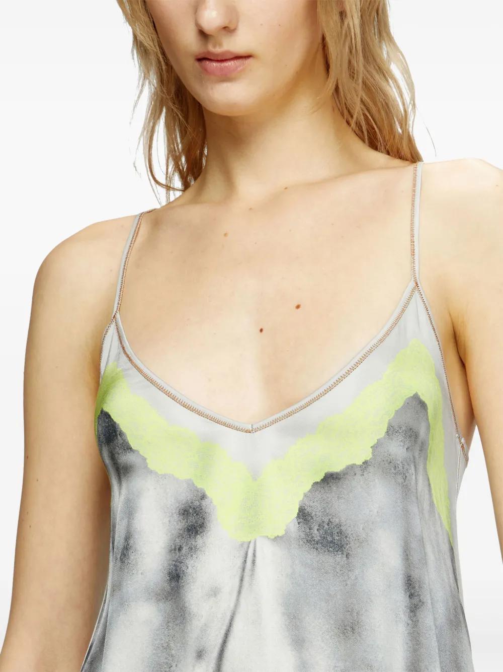 grey U-neck thin shoulder straps rear criss-cross straps embroidered logo to the rear