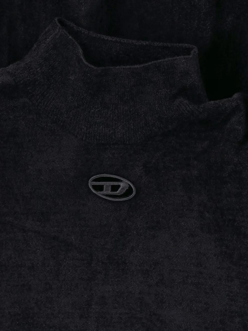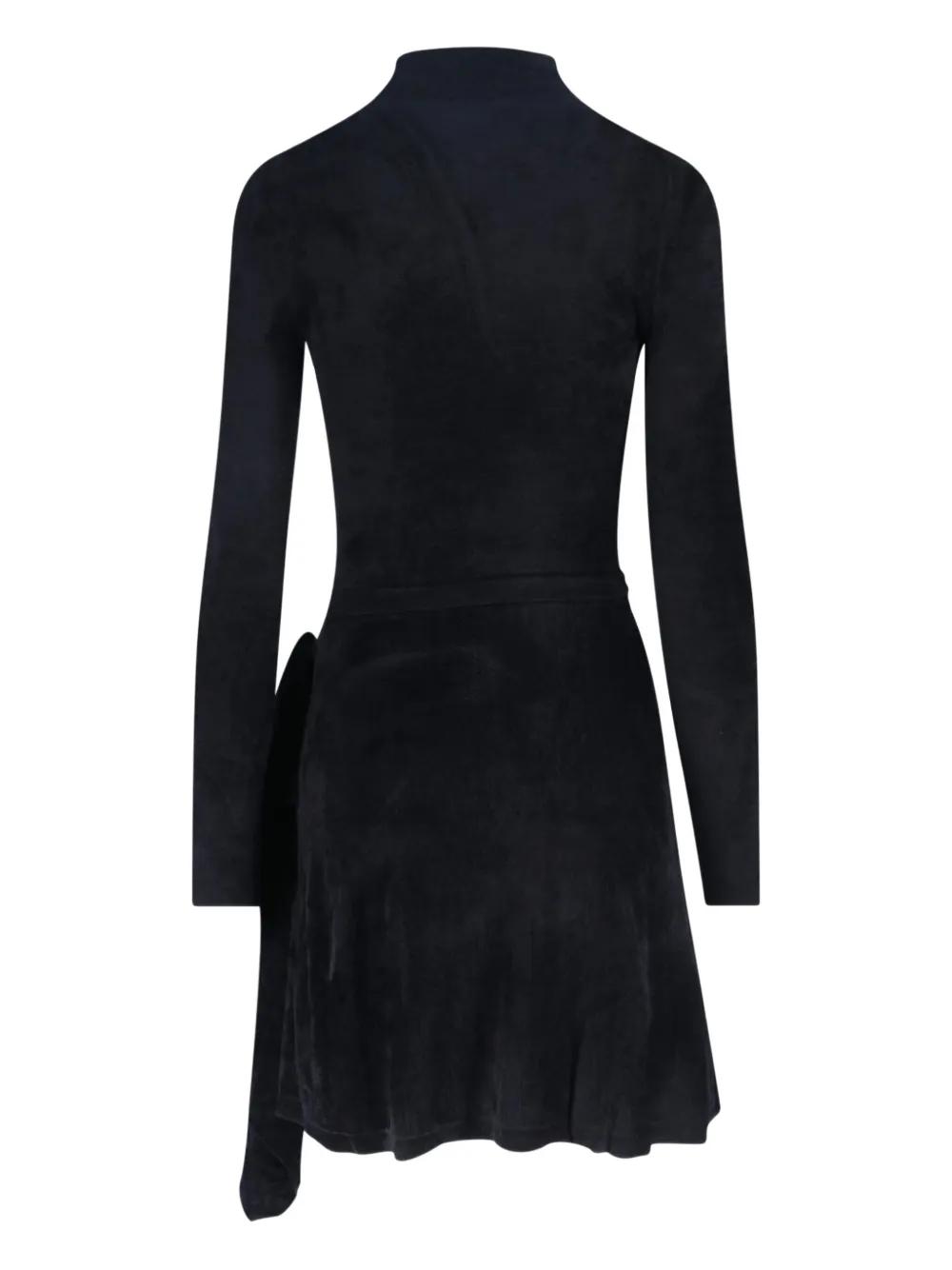 black high neck cut-out detail long sleeves draped skirt asymmetric hem
