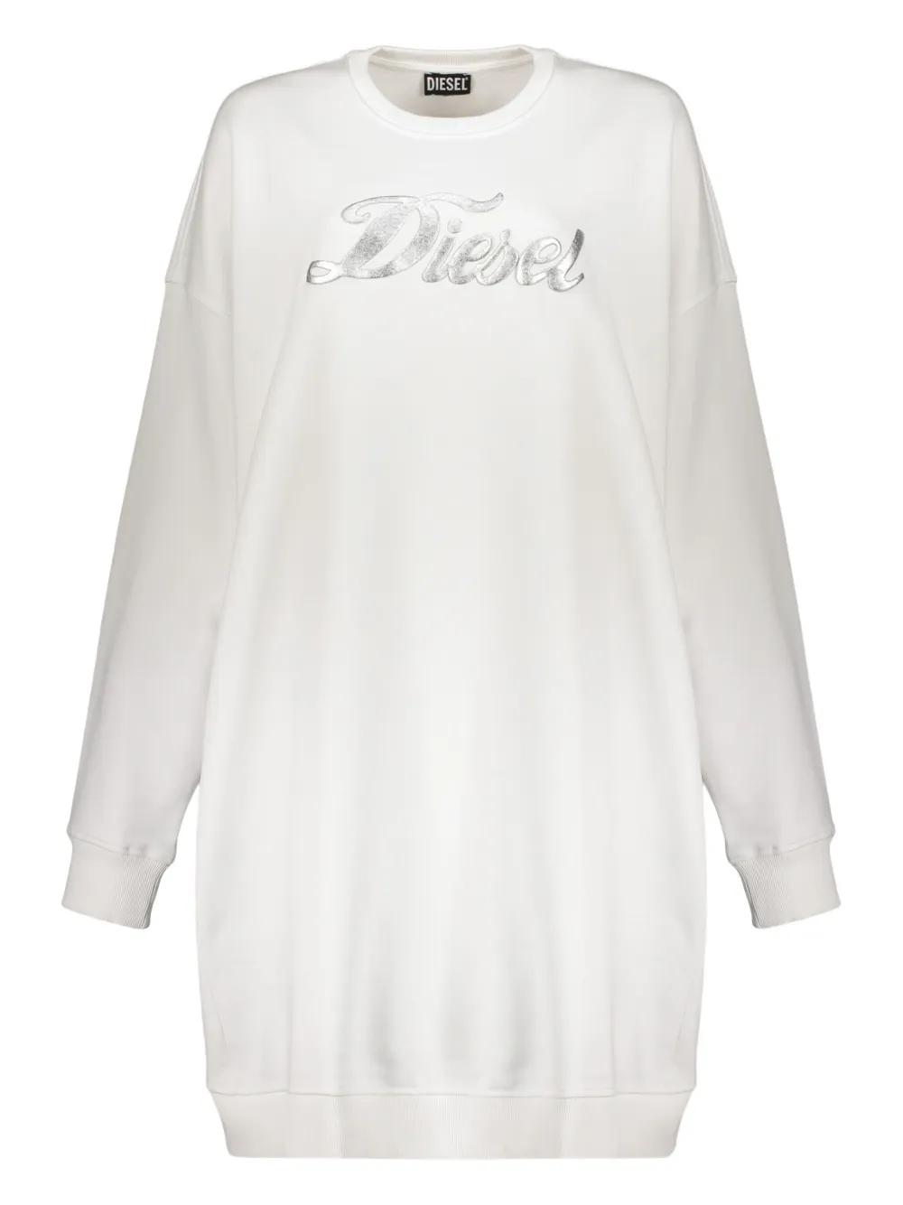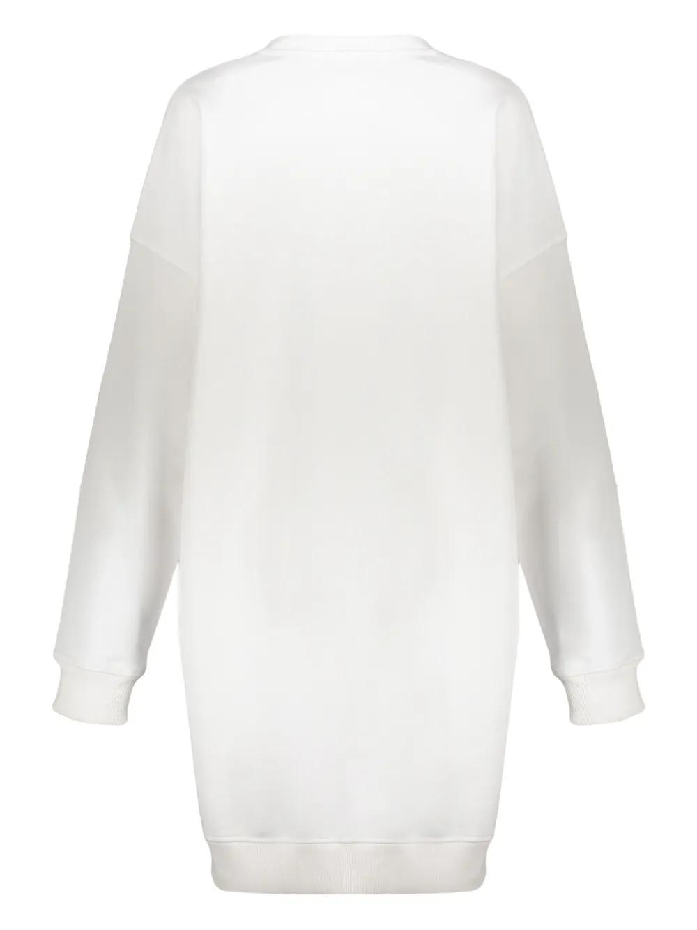 white logo print round neck long sleeves ribbed hem ribbed cuffs