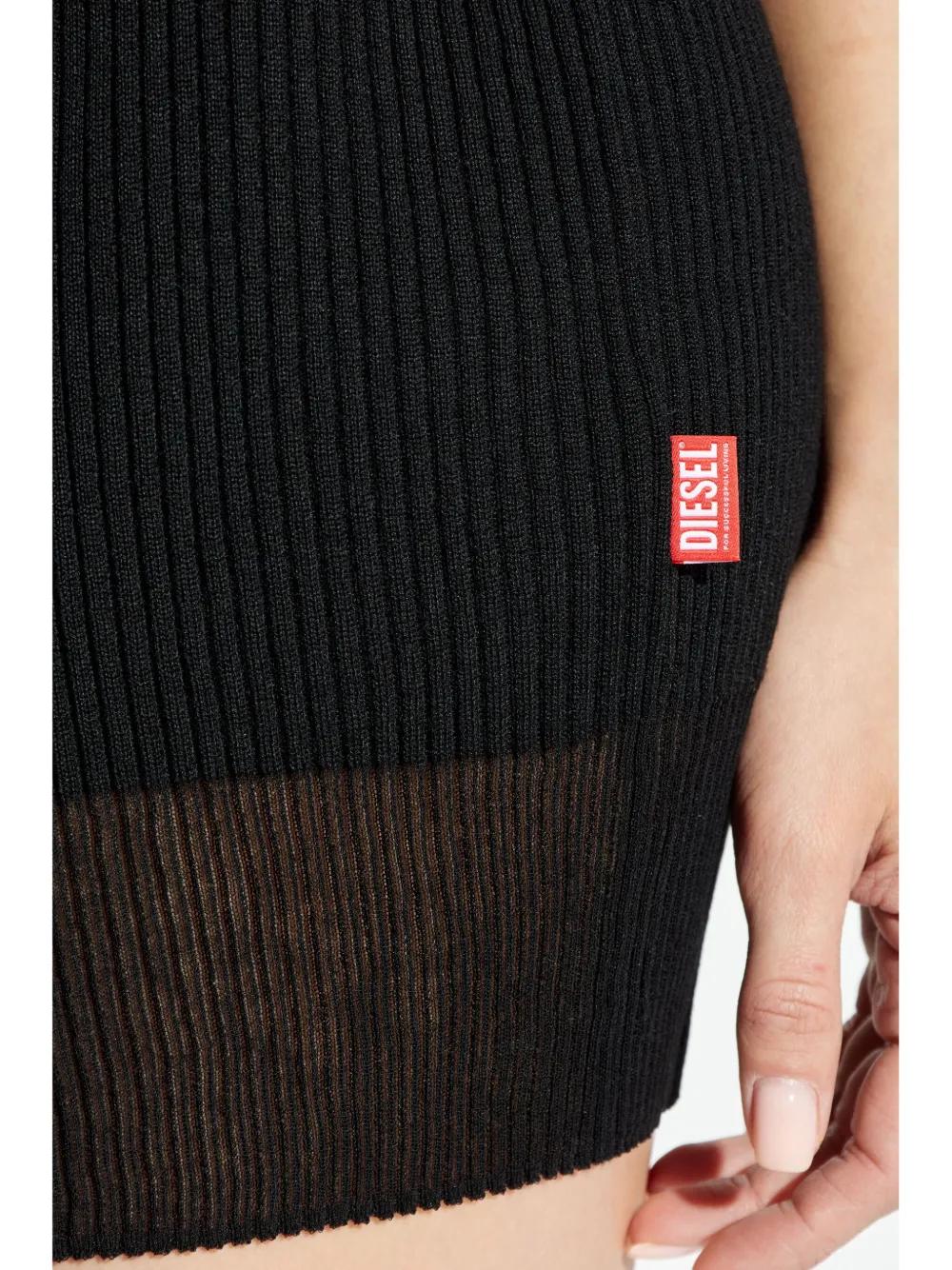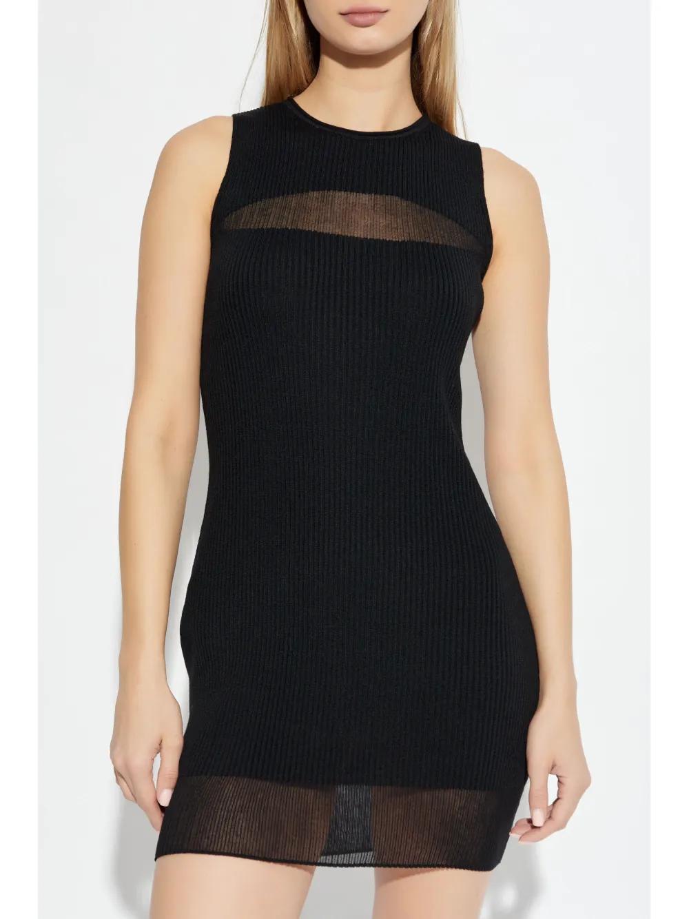 black ribbed knit semi-sheer panels crew neck sleeveless