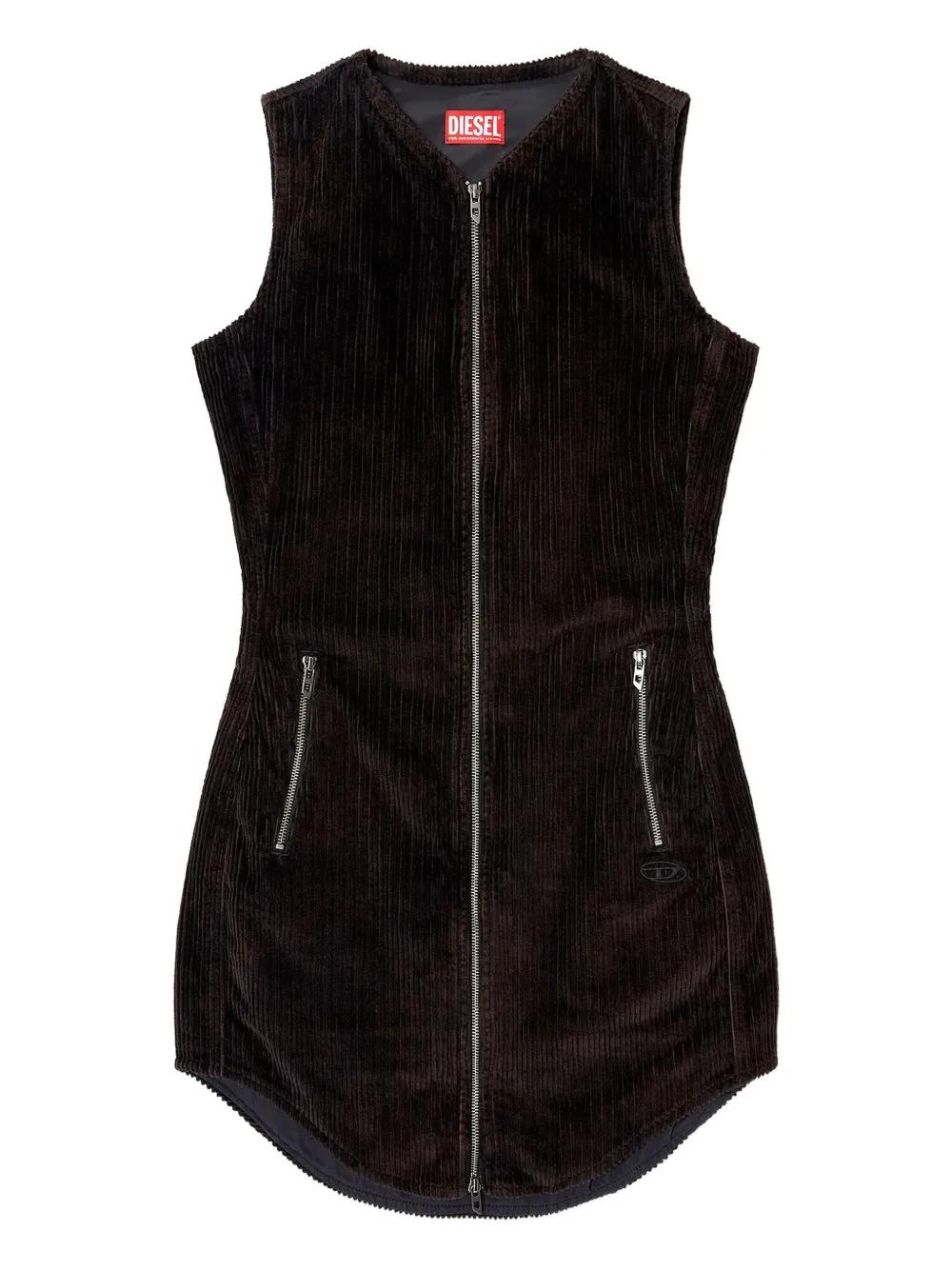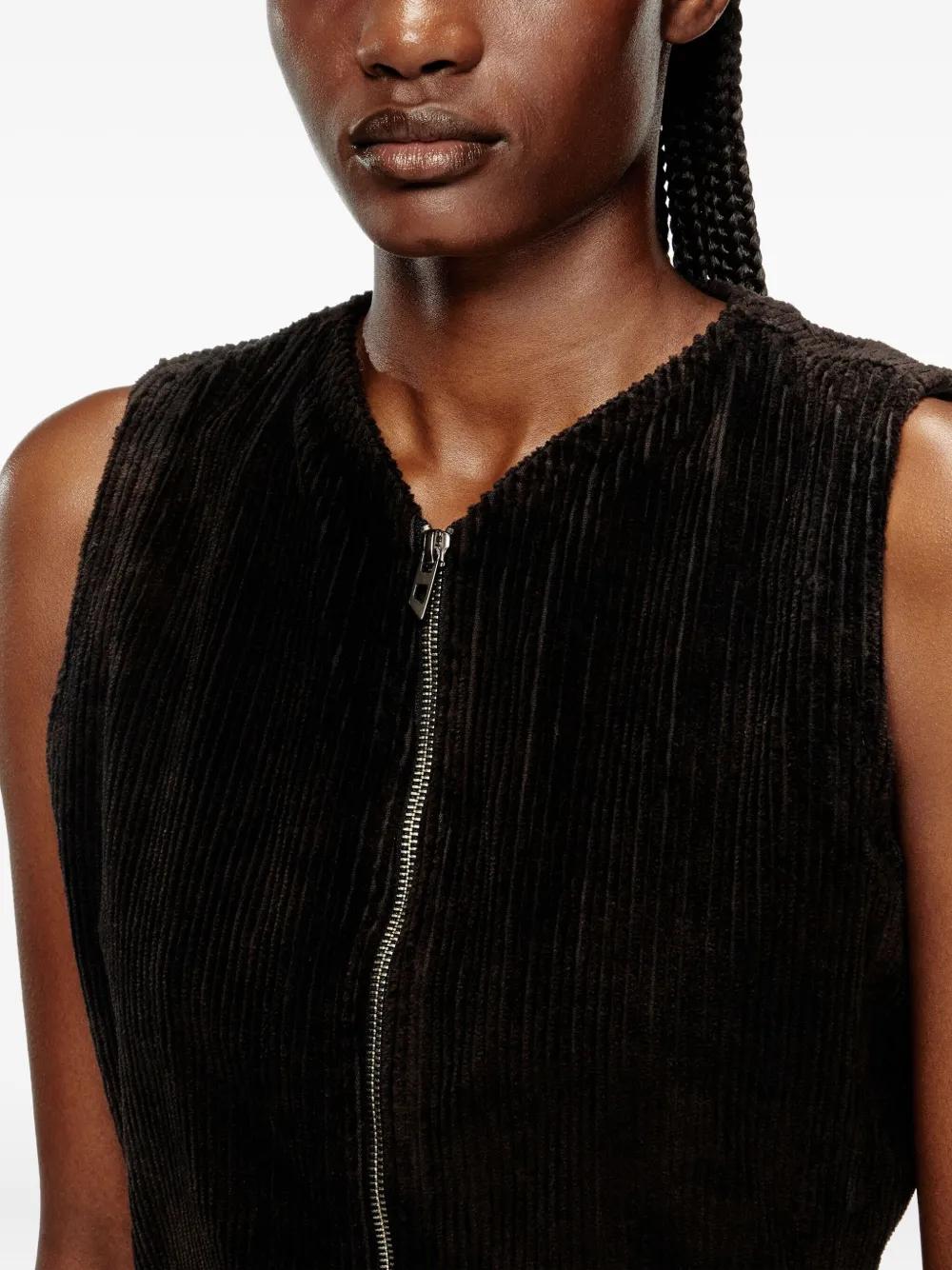 black corduroy texture zip fastening sleeveless curved hem side pockets