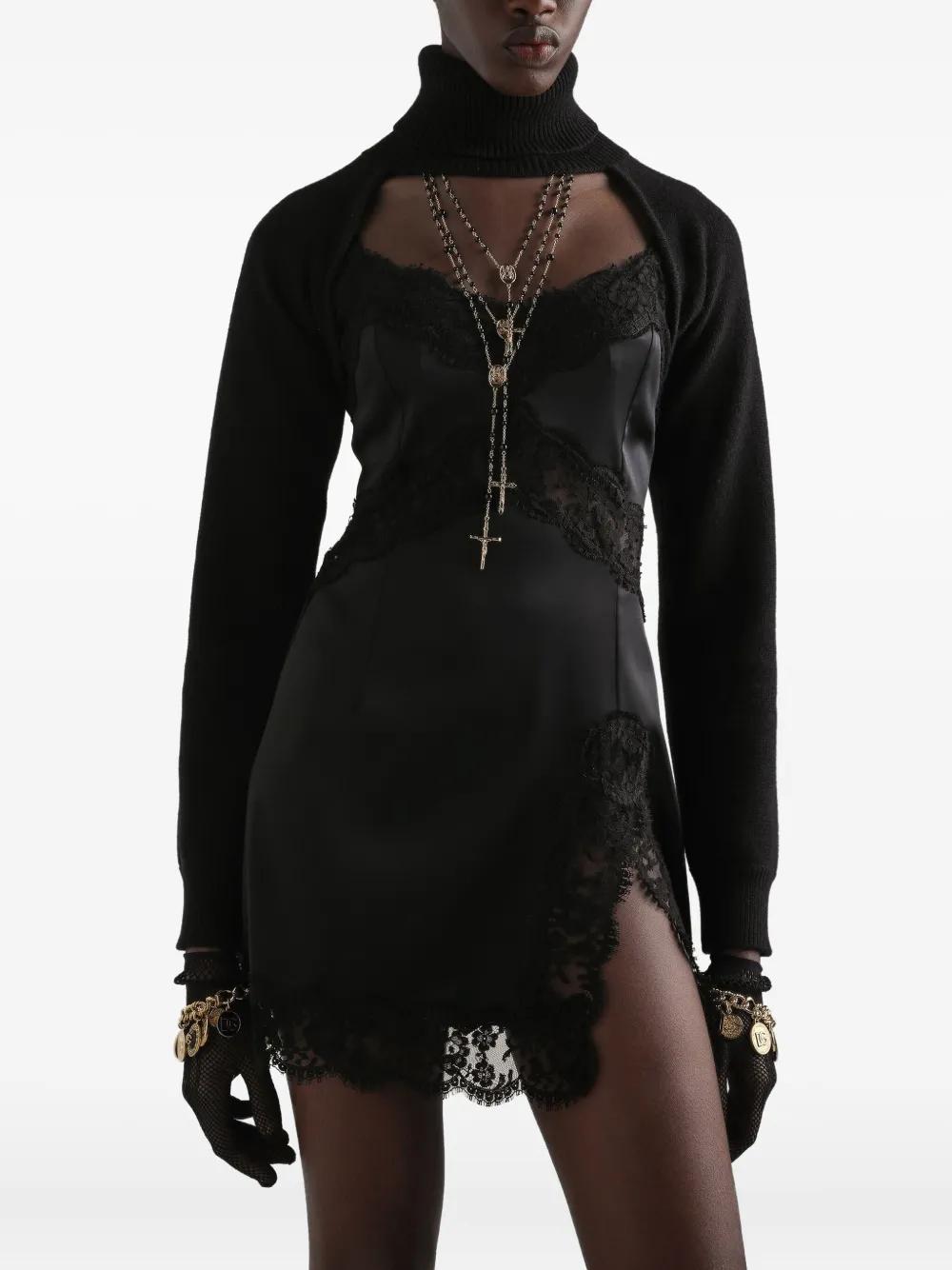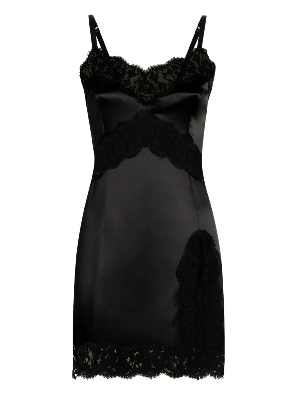 Dolce & Gabbana lace-trimmed satin slip mini dress - Black