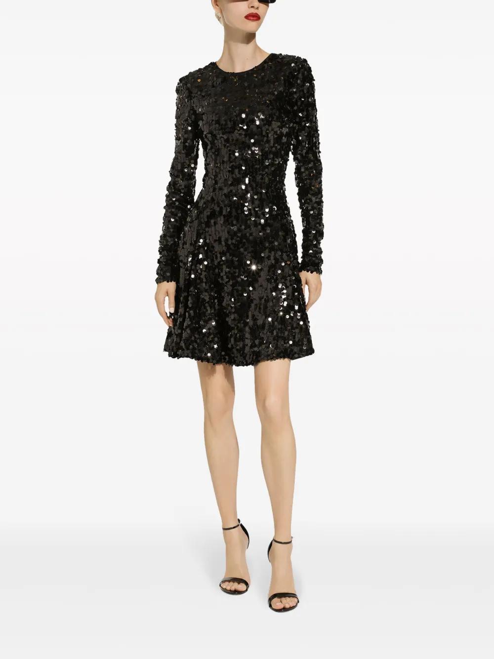 Dolce & Gabbana sequin-embellished long-sleeve minidress - Black