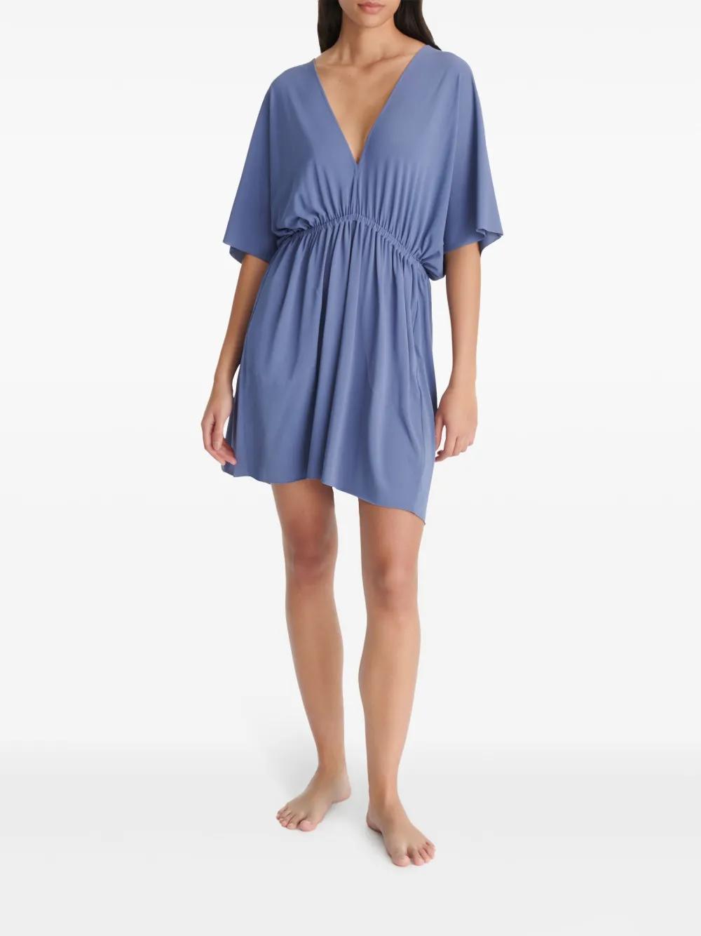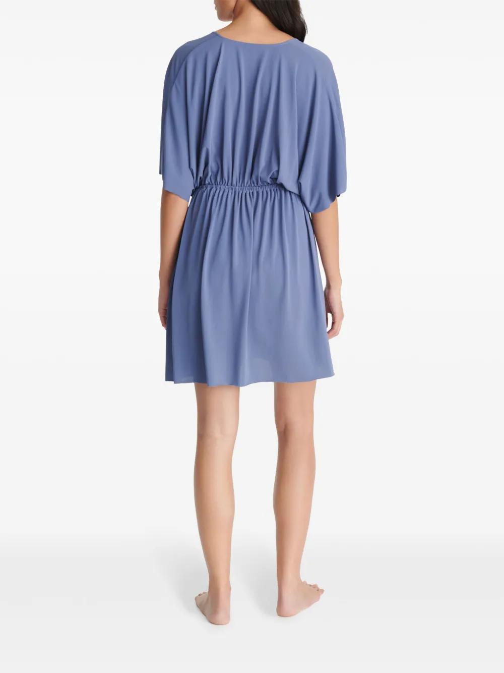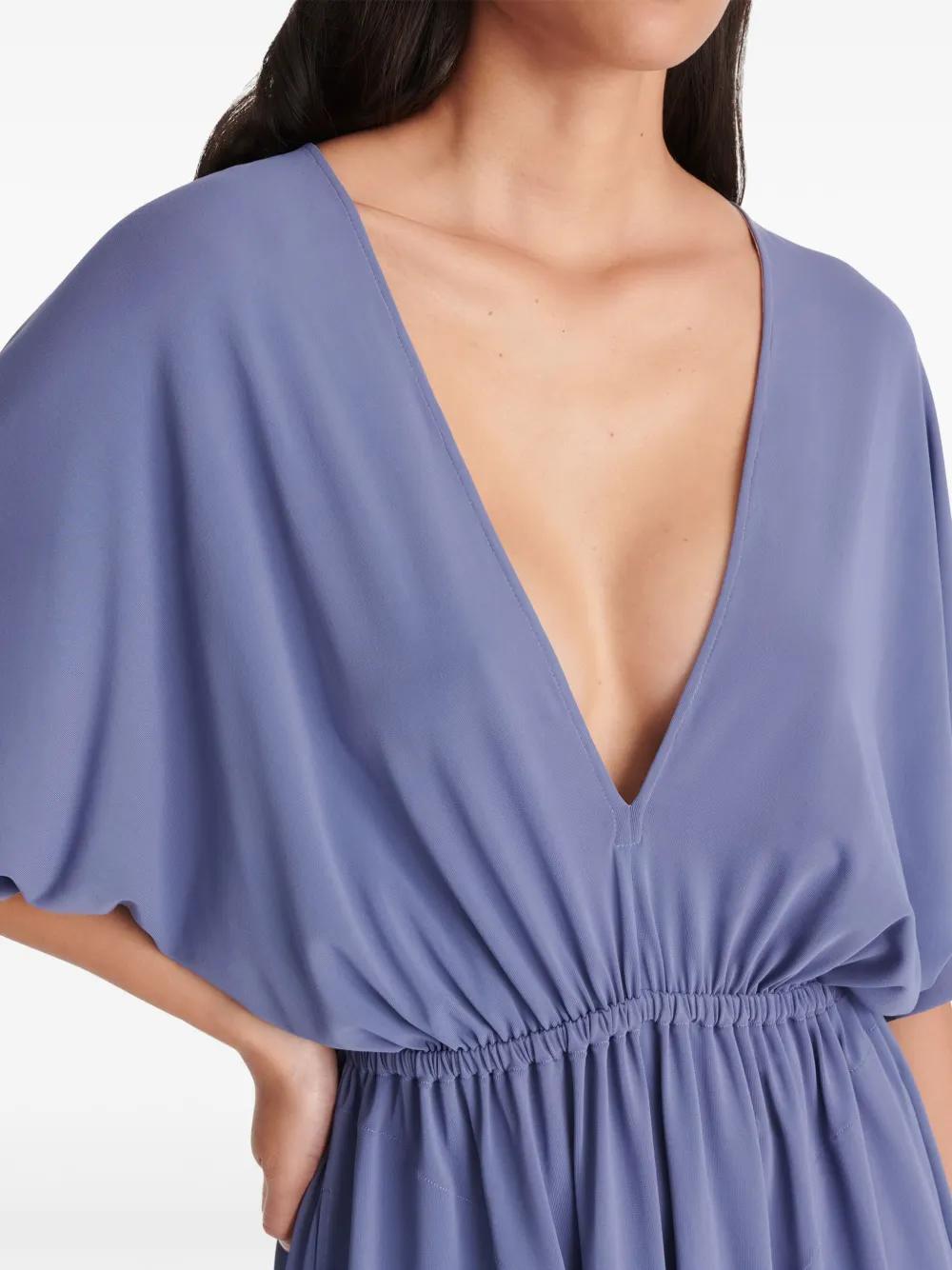 cornflower blue elasticated waistband plunging V-neck short sleeves